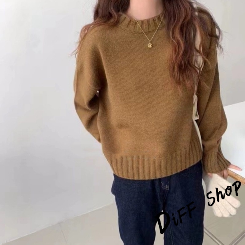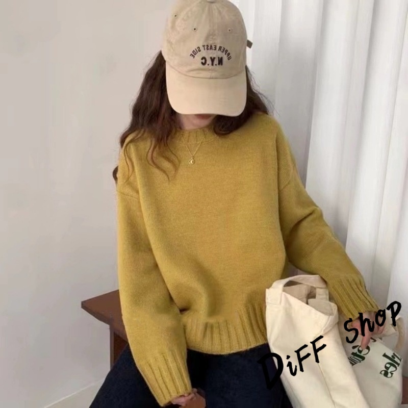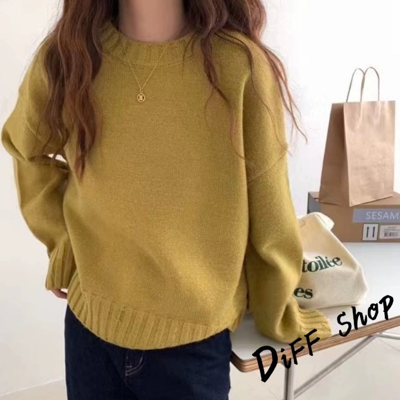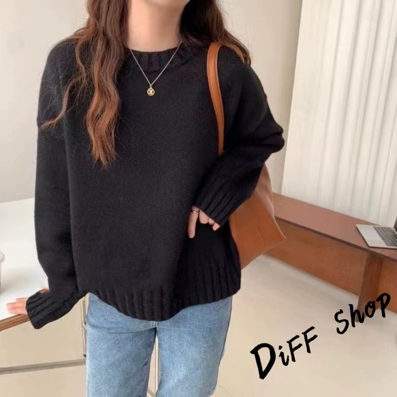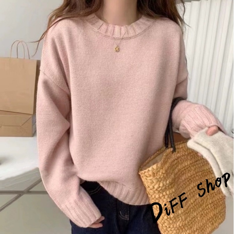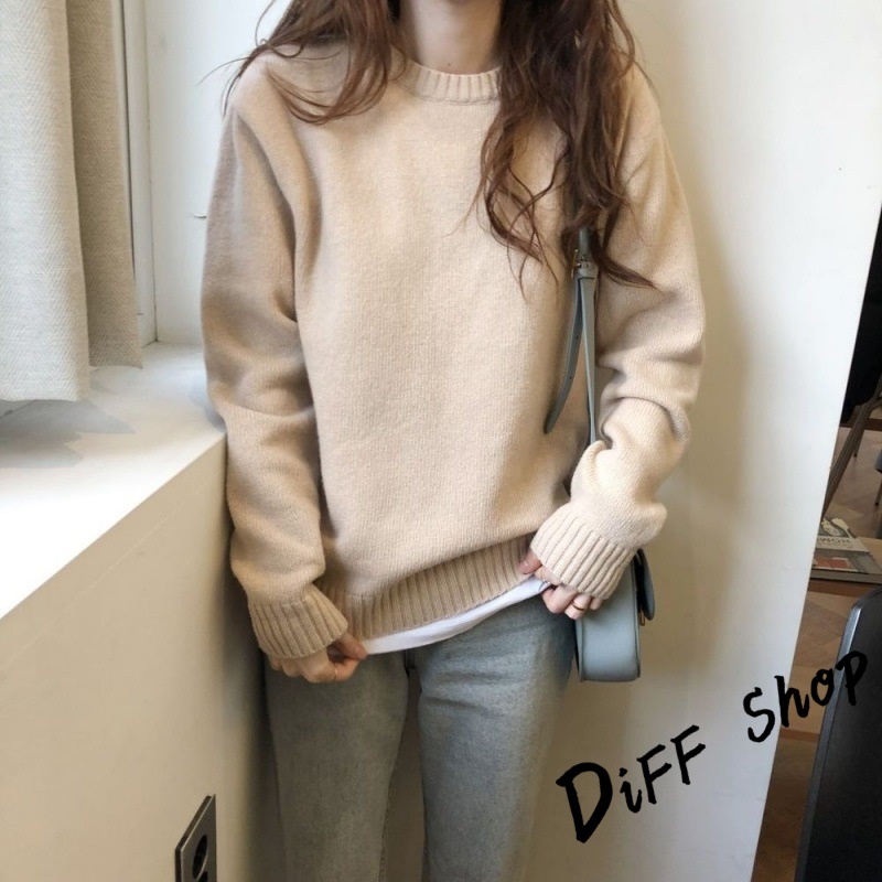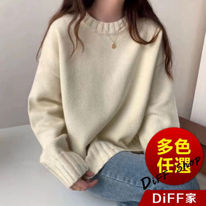 【DIFF】韓版寬鬆慵懶風圓領毛衣 針織上衣 長袖上衣 女裝 衣服 長袖t恤 發熱衣 保暖上衣 冬裝 內刷毛【W527】