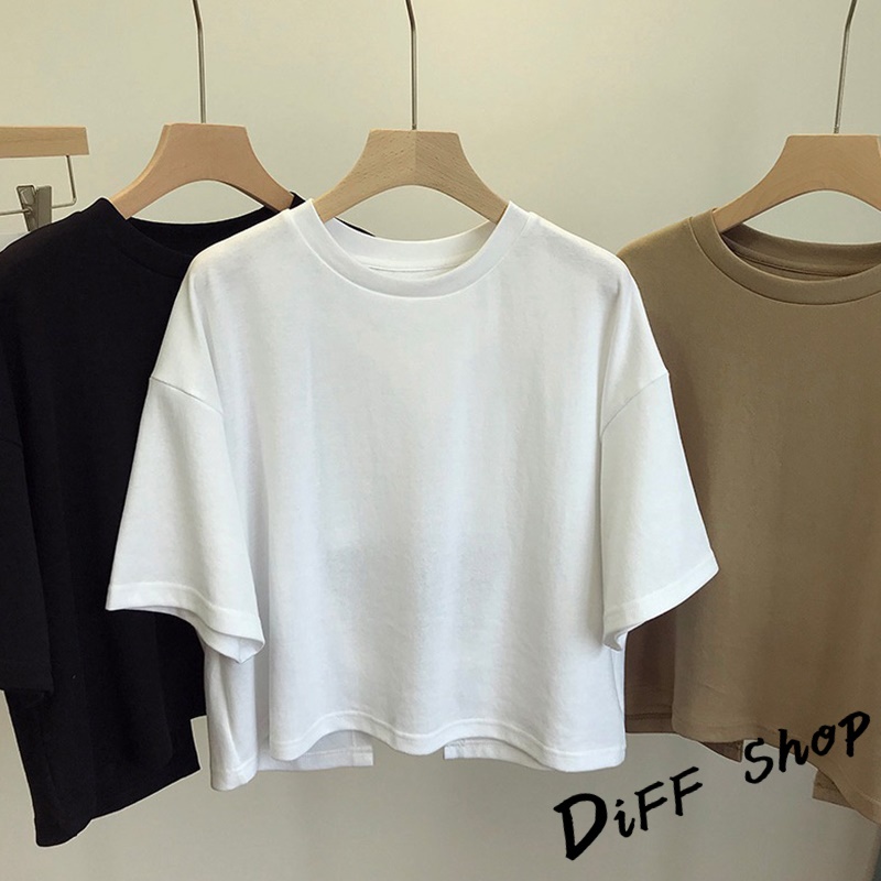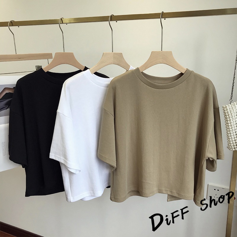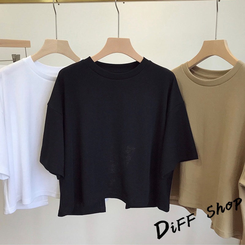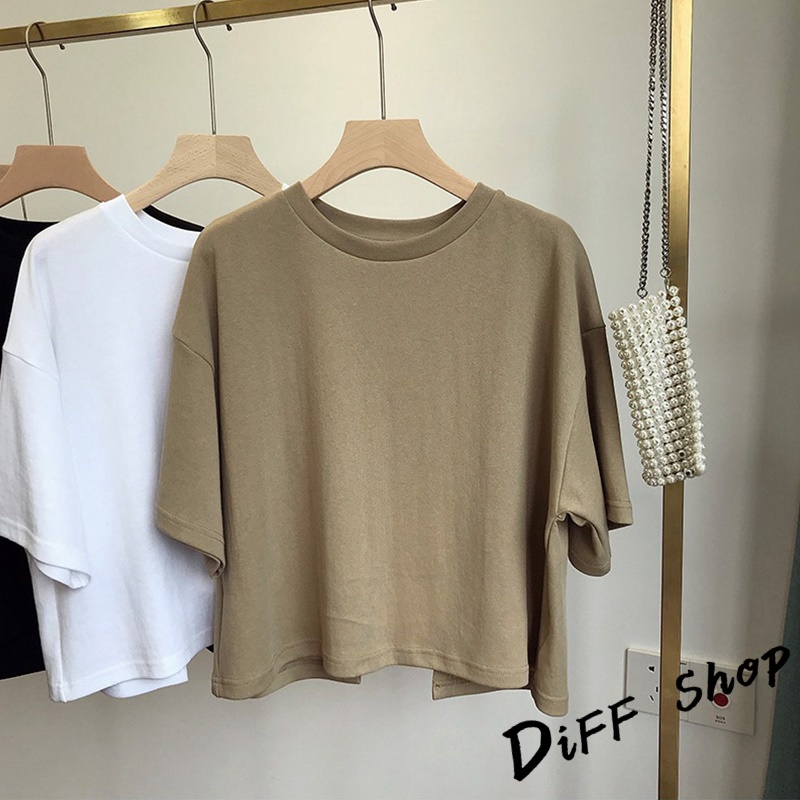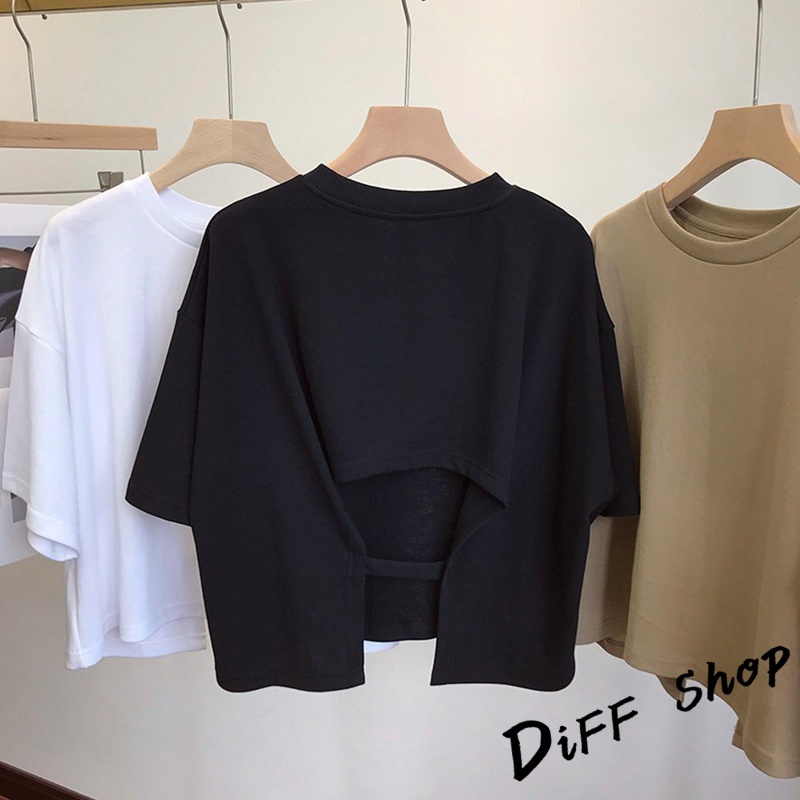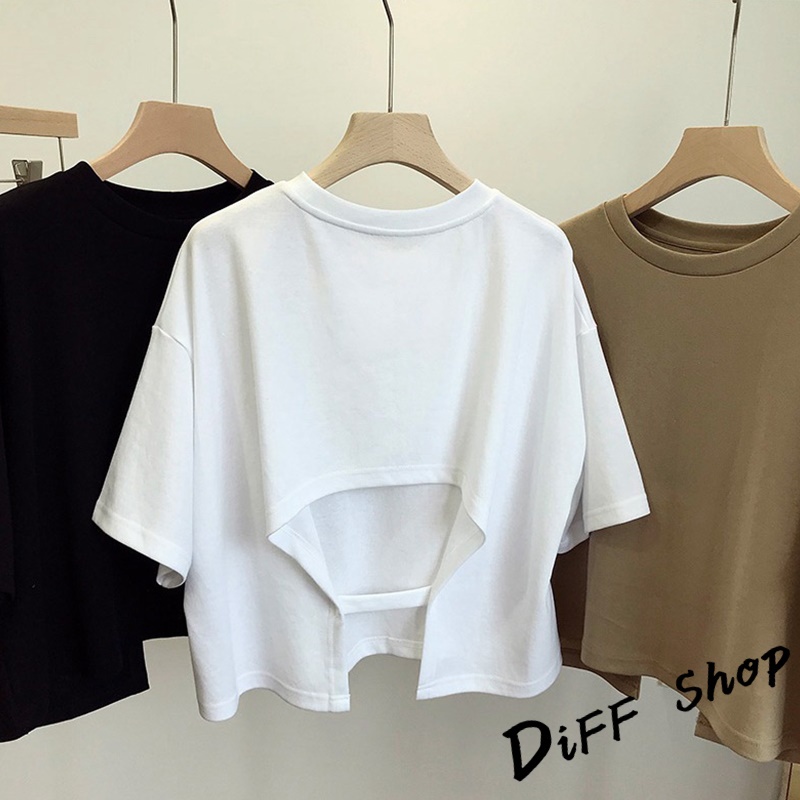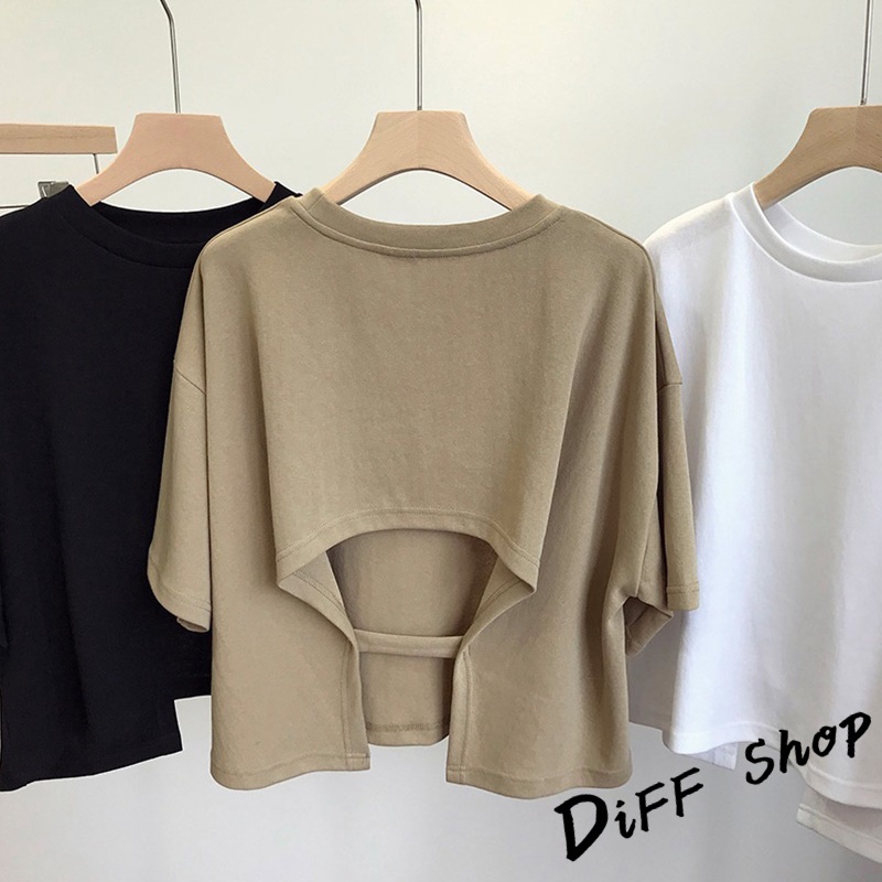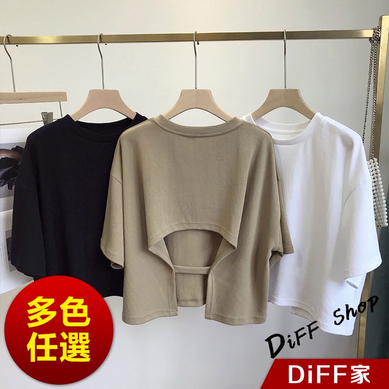 【DIFF】韓版露背寬鬆短版上衣 短袖上衣 短袖t恤 女裝 顯瘦上衣 衣服 寬鬆上衣 素T 短板上衣【T494】【T494】黑色|【T494】白色|【T494】卡其色T-shirtsDiFF shop