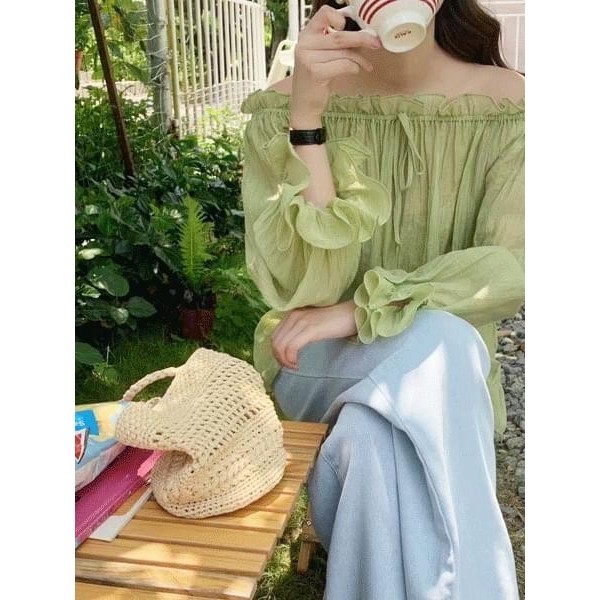 Codibook|韓國 dressnalda 性感鎖骨露肩荷葉袖綁帶上衣[預購]雪紡襯衫 女裝芥末色,Free|粉紅色,Free|萊姆,Free|米褐色,FreeShirts & BlousesCodibook 韓國女裝購物平台