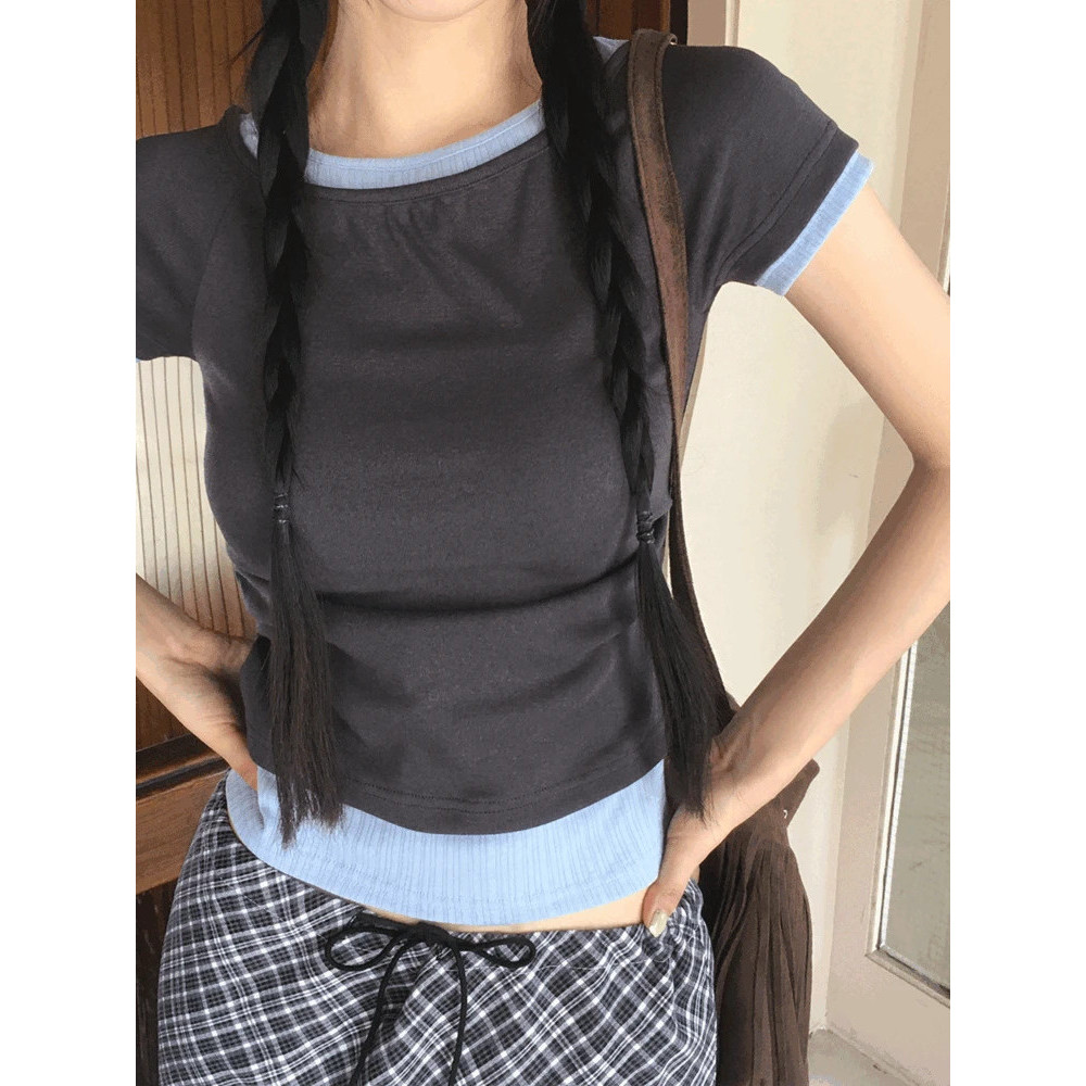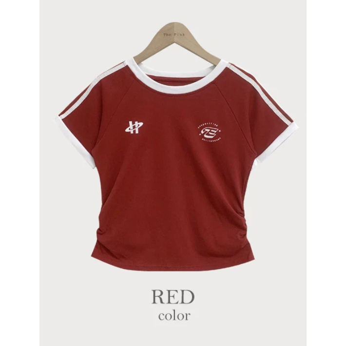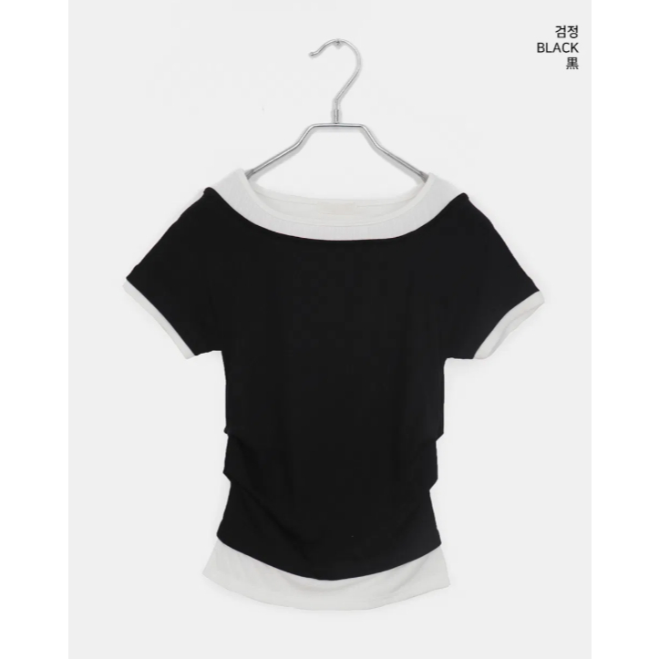 Codibook|韓國 thepink 安娜撞色拼接側褶短版短袖T恤[預購]短袖上衣 T恤 女裝紅色,free|海軍藍,free|白色,free|深灰色,free|黑色,freeT-shirtsCodibook 韓國女裝購物平台