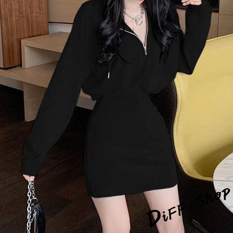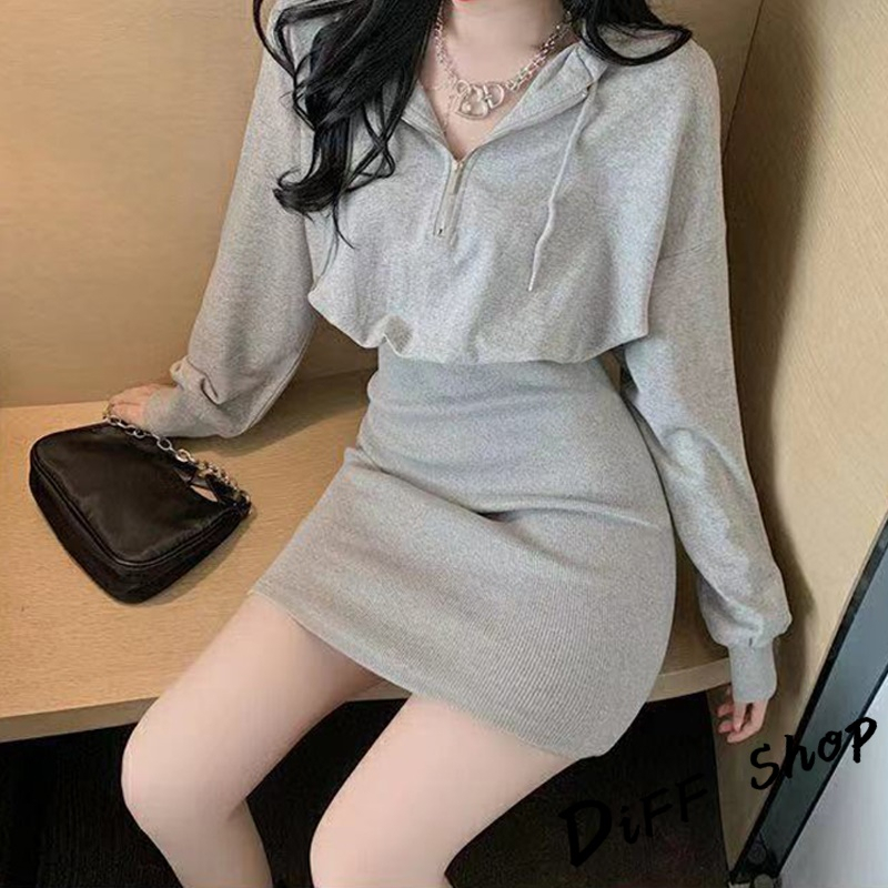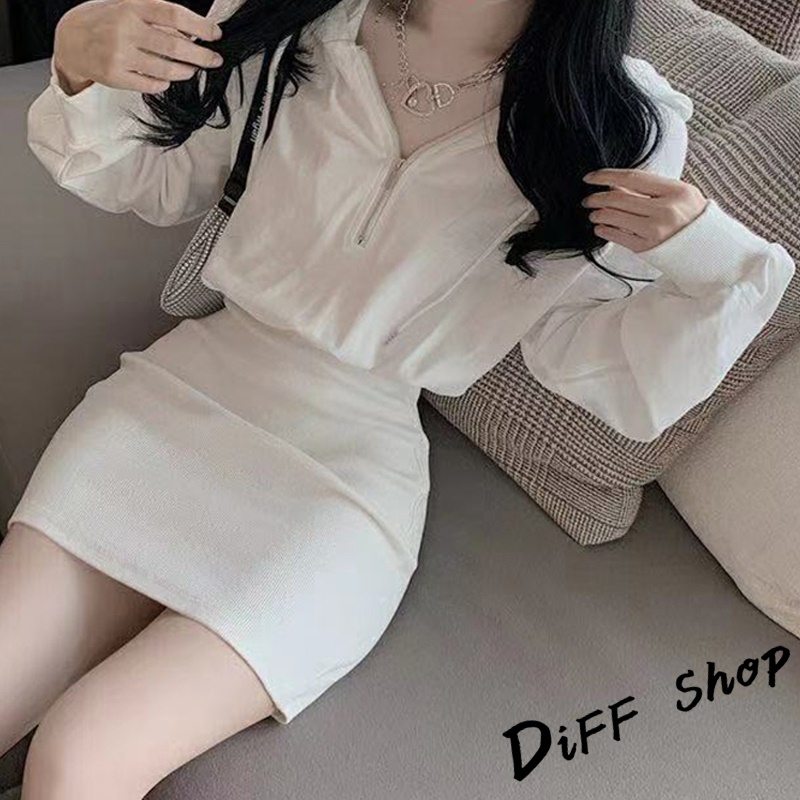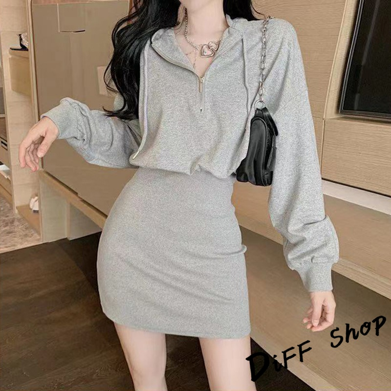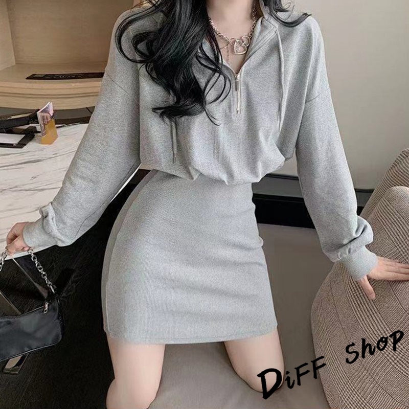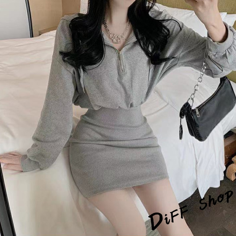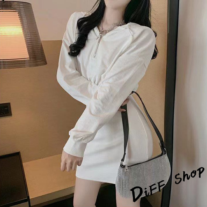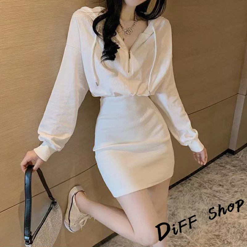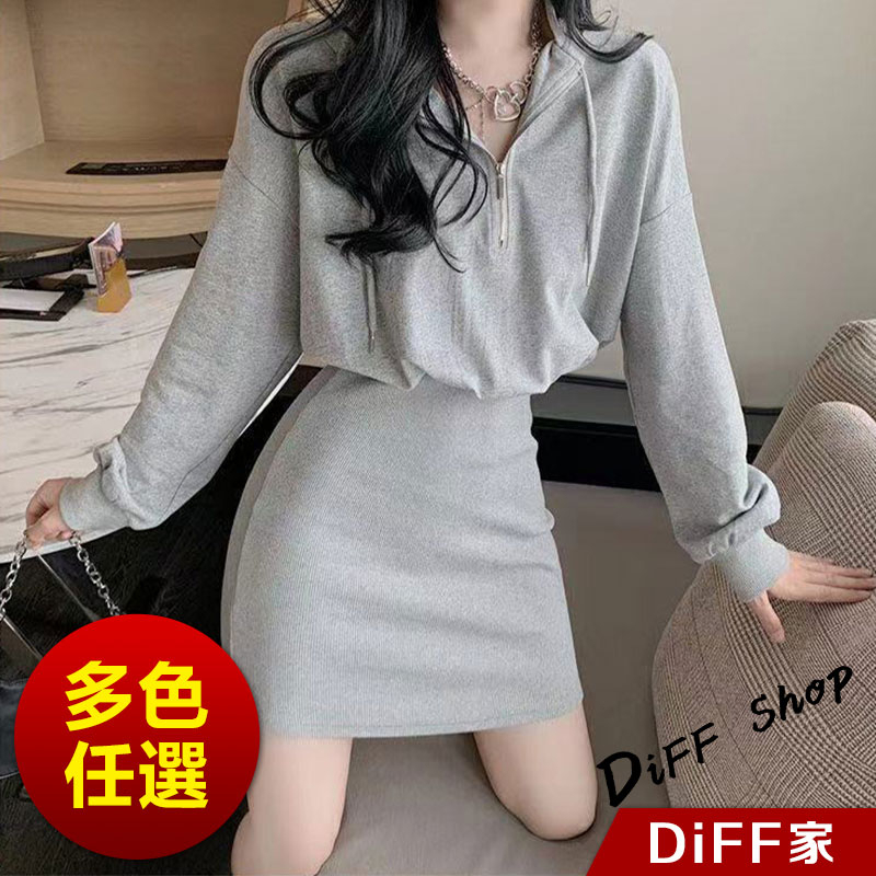 【DIFF】韓版收腰修身顯瘦連帽運動套裝 連衣裙 連身裙 長袖上衣 女裝 衣服 寬鬆上衣 顯瘦上衣 長袖t恤【S244】【S244】灰色|【S244】黑色|【S244】白色DiFF shop