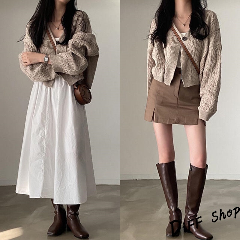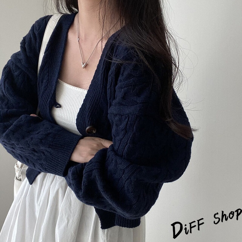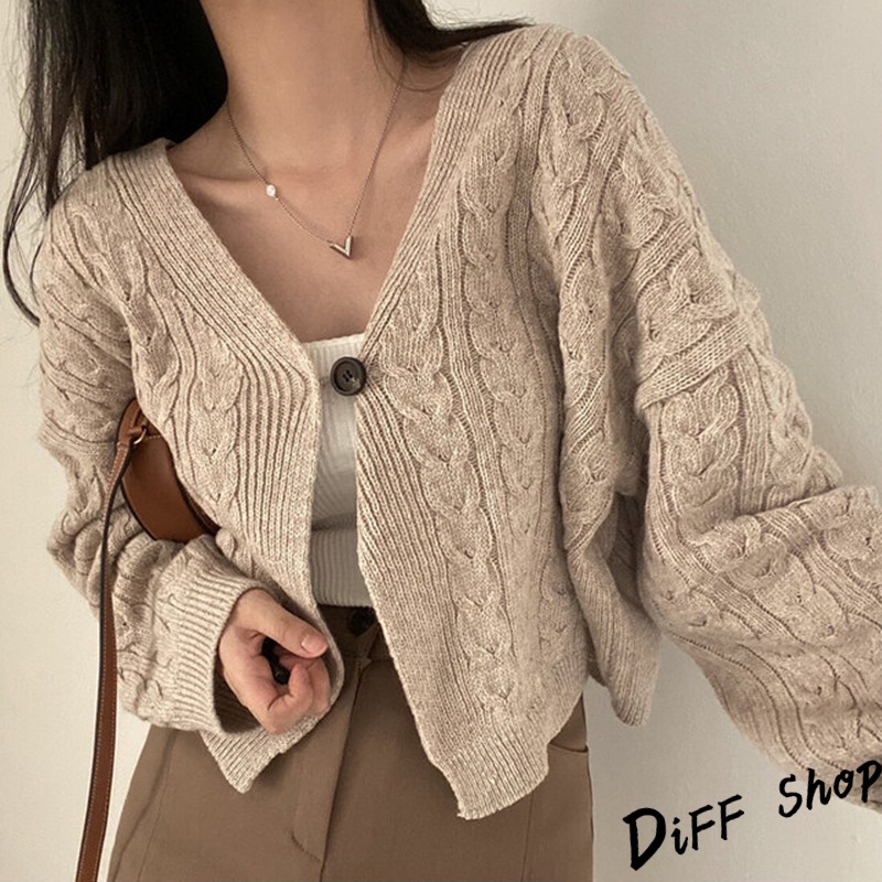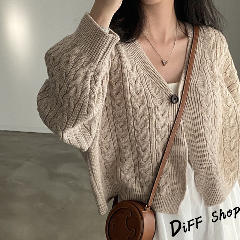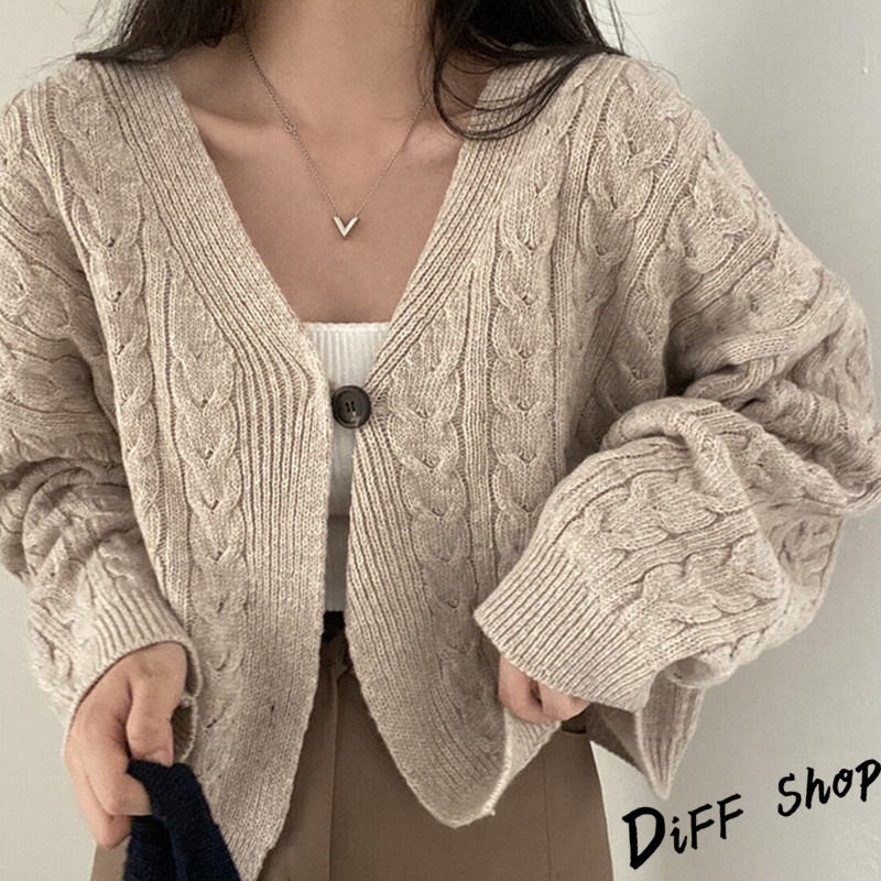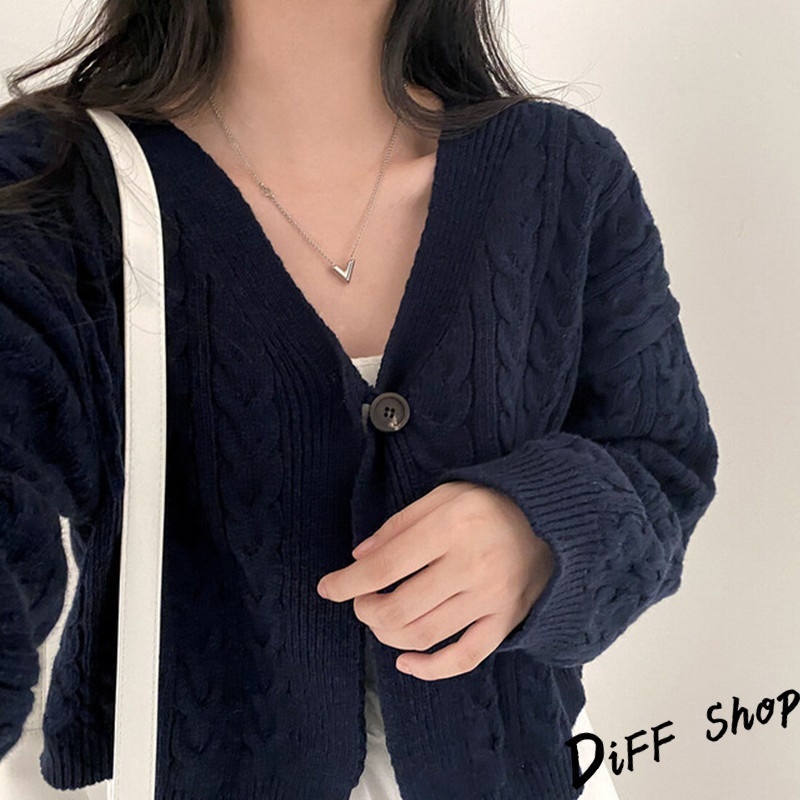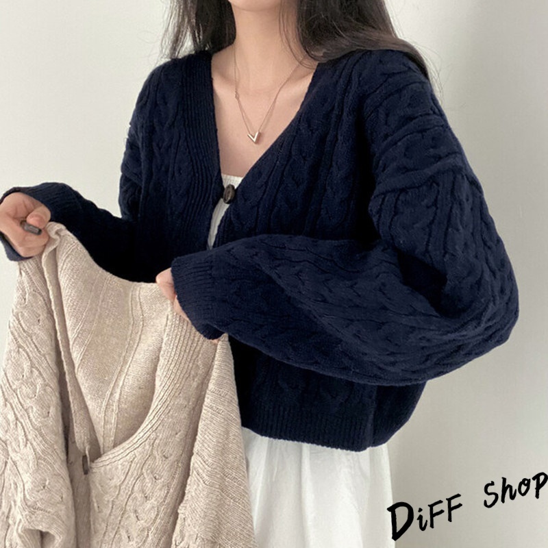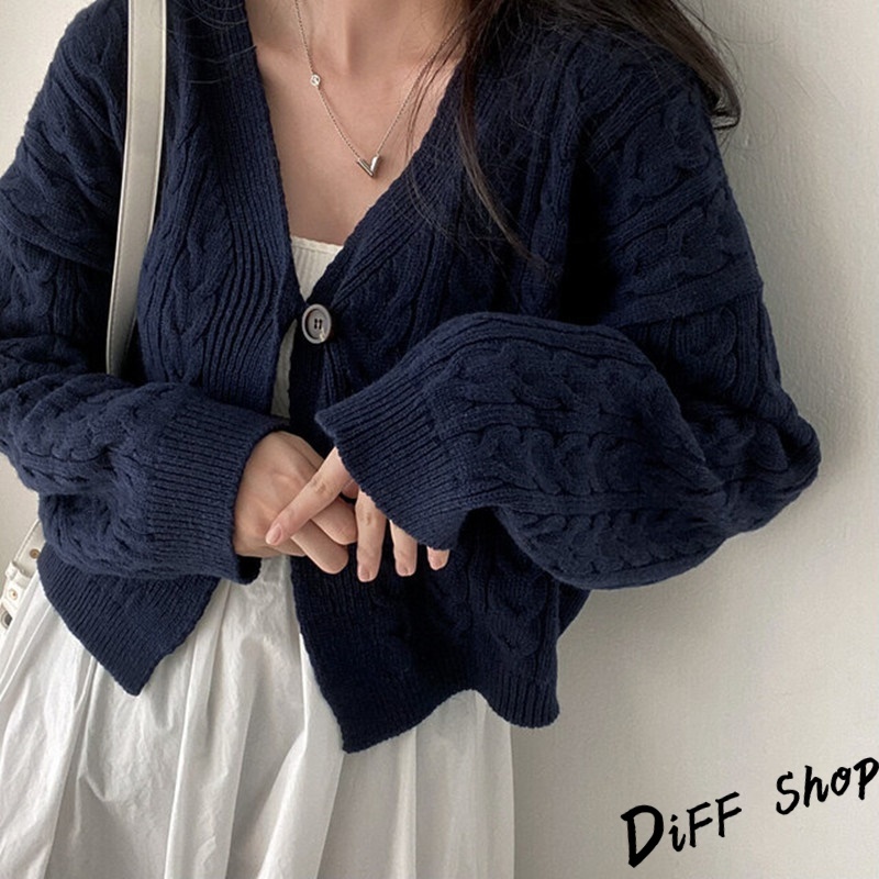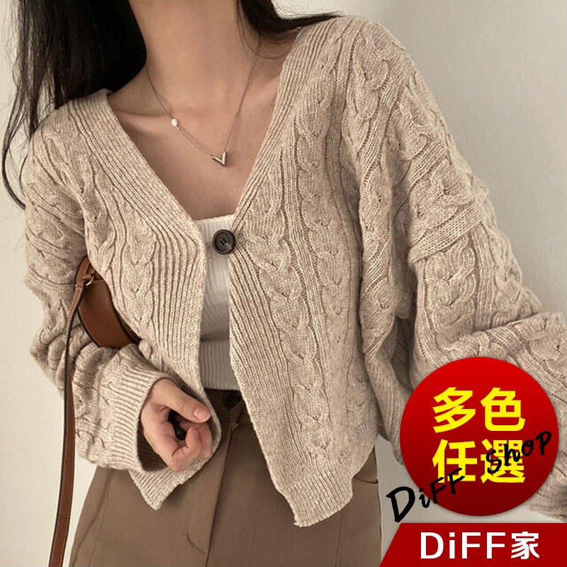 【DIFF】韓版復古寬鬆麻花V領短版針織外套 上衣 女裝 衣服 外套 長袖上衣 針織上衣 毛衣【J292】【J292】藏青|【J292】卡其DiFF shop