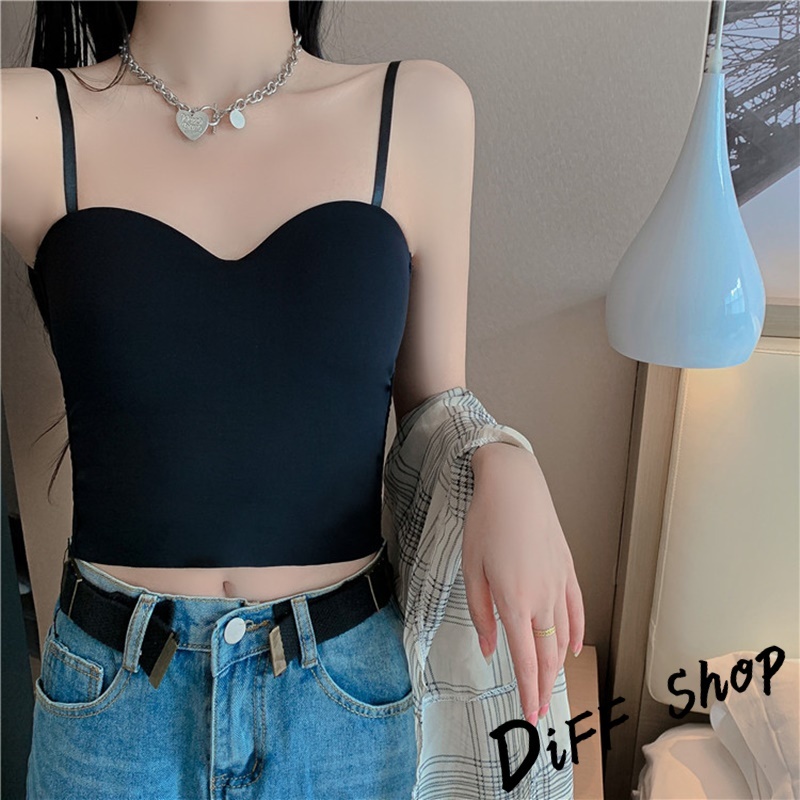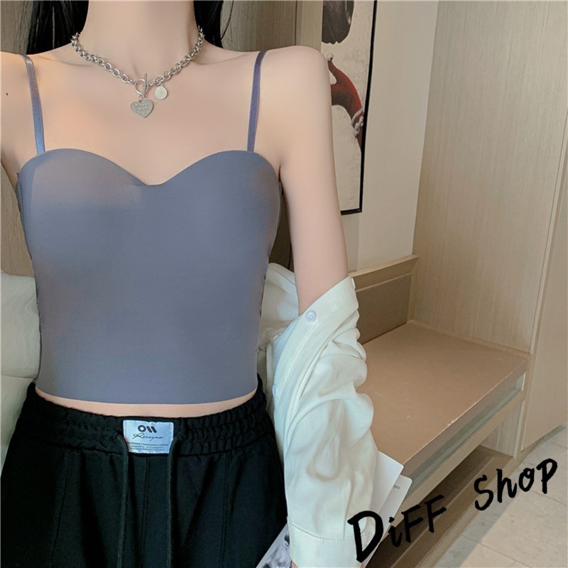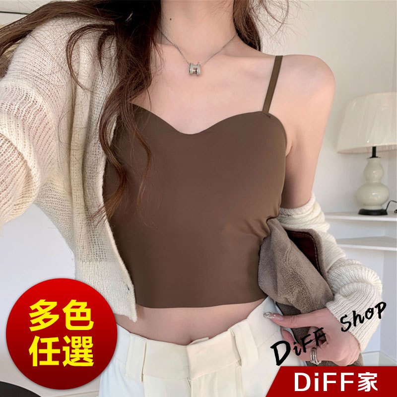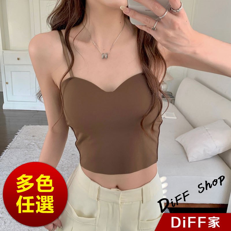 【DIFF】韓版小心機V領美背彈性顯瘦短版背心 帶胸墊免穿內衣 小可愛 女裝 衣服 短版上衣 運動背心【V259】【V259】白色|【V259】黑色|【V259】灰色|【V259】咖啡色Tanks & CamisolesDiFF shop