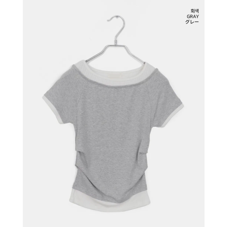 Codibook|韓國 wonderwonder 拼色褶皺短袖T恤[預購]短袖上衣 T恤 女裝象牙白,FREE|灰色,FREE|墨色,FREE|黑,FREET-shirtsCodibook 韓國女裝購物平台