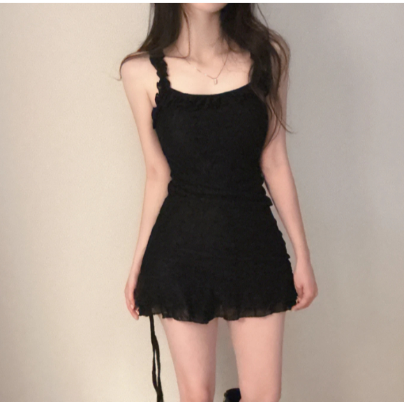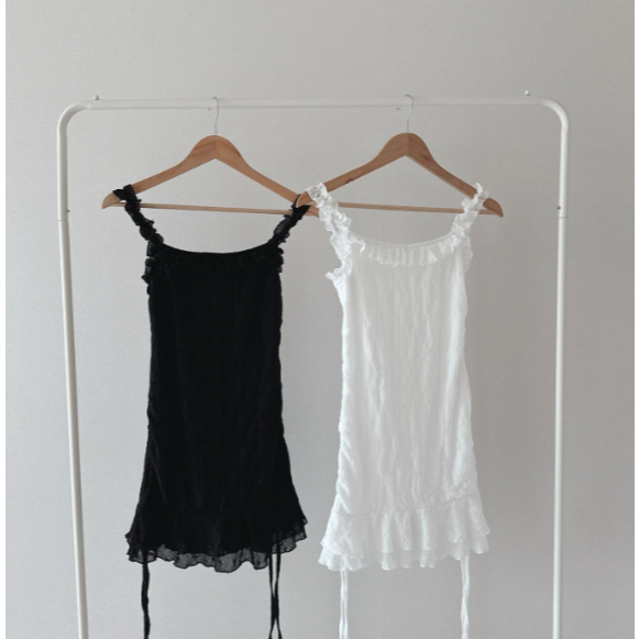 Codibook|韓國 LOVENSOME 花朵蕾絲荷葉邊褶皺迷你短洋裝[預購]迷你短洋裝 細肩帶緞面洋裝 女裝白色,free|黑色,freeCodibook 韓國女裝購物平台