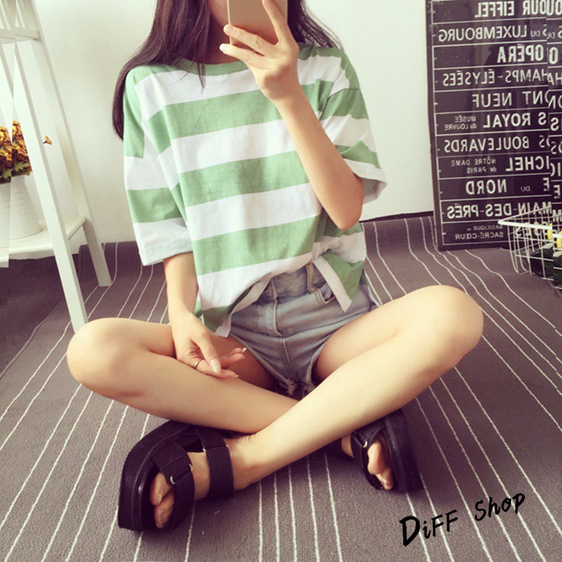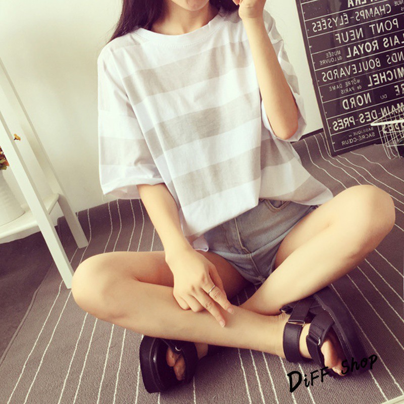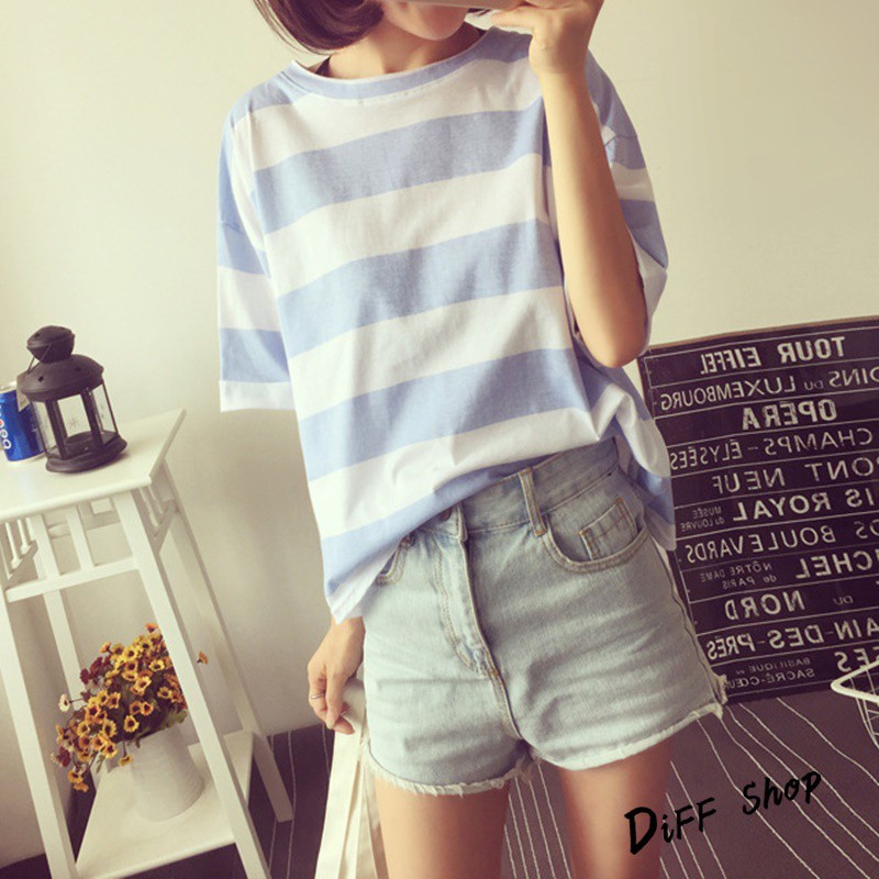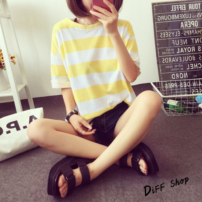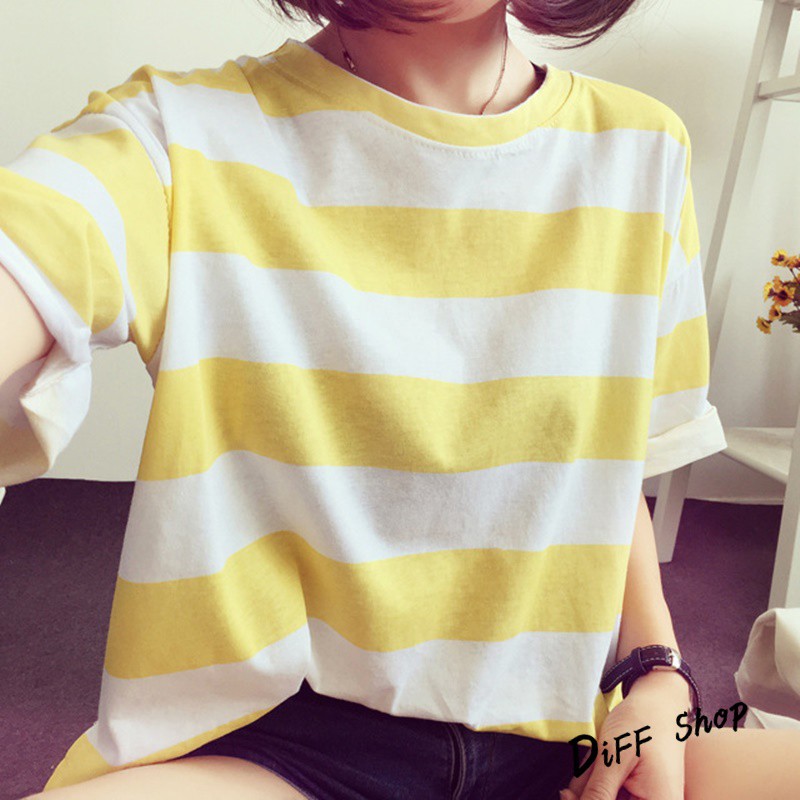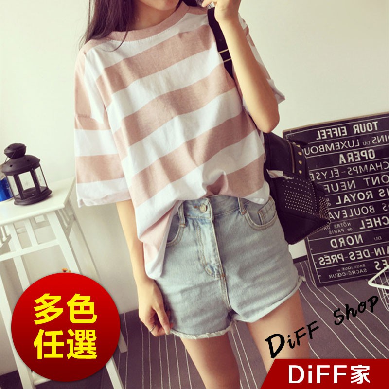 【DIFF】韓版新款夏季糖果色條紋短袖T恤 百搭條紋 繽紛色 條紋上衣 短袖上衣 女裝 衣服【T102】【T102】藍色|【T102】粉色|【T102】黃色|【T102】灰色|【T102】綠色|【T102】長袖版-藍色|【T102】長袖版-粉色|【T102】長袖版-黑色T-shirtsDiFF shop