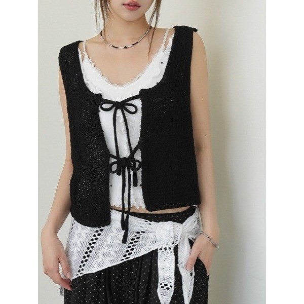 Codibook|韓國 binary01 絲帶造型U領針織背心[預購]針織外套 背心 女裝米褐色,FREE|咖啡色(棕色),FREE|薄荷色,FREE|灰色,FREE|黑色,FREEWinter Jackets & CoatsCodibook 韓國女裝購物平台