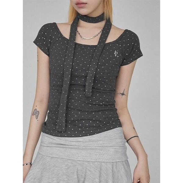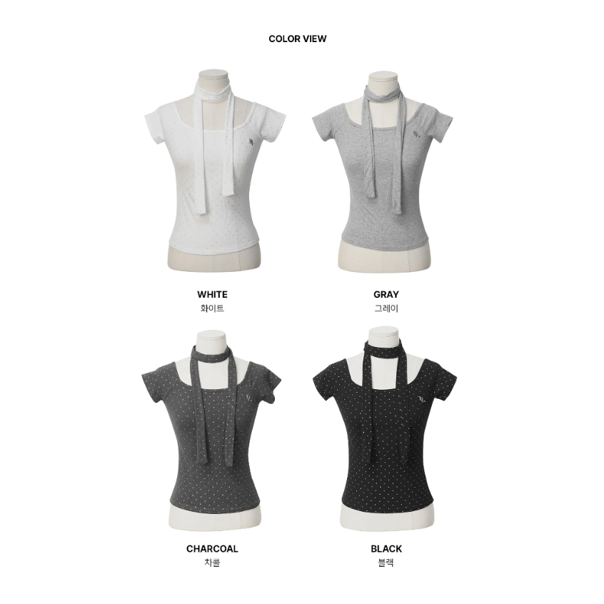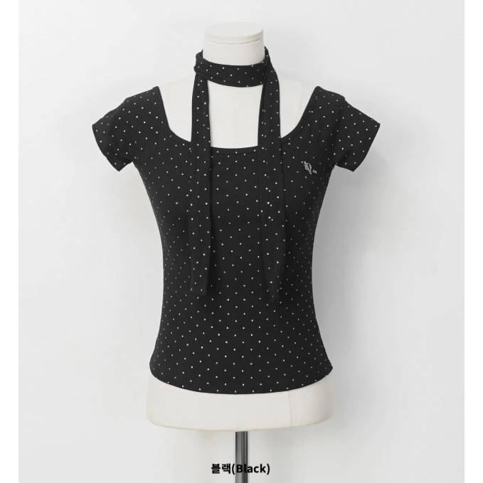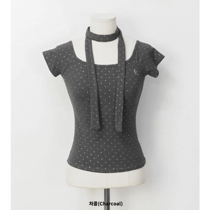 Codibook|韓國 binary01 方領點點修身短袖T恤[預購]短袖上衣 T恤 女裝白色,FREE|灰色,FREE|深灰色,FREE|黑色,FREET-shirtsCodibook 韓國女裝購物平台