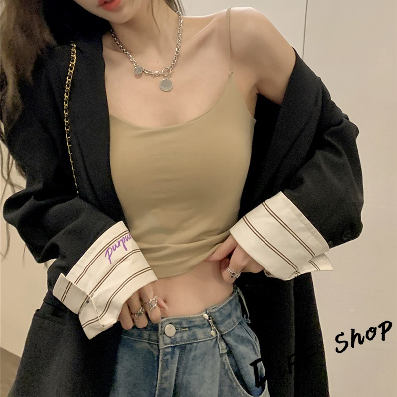【DIFF】韓版無痕冰絲細肩背心 帶胸墊免穿內衣 上衣 小可愛 女裝 衣服 短版上衣 短板上衣 運動背心【V278】【V278】黑色|【V278】白色|【V278】卡其色|【V278】灰色|【V278】粉色Tanks & CamisolesDiFF shop