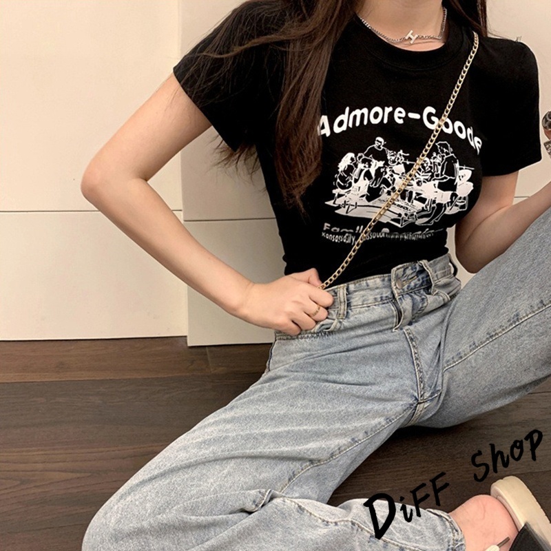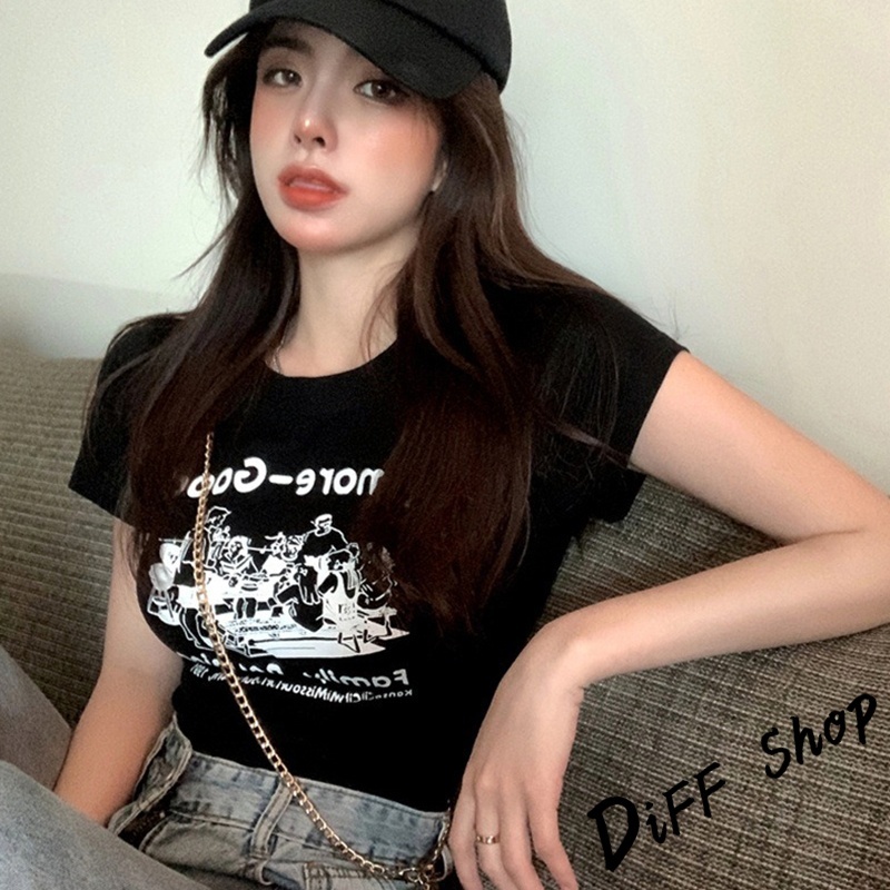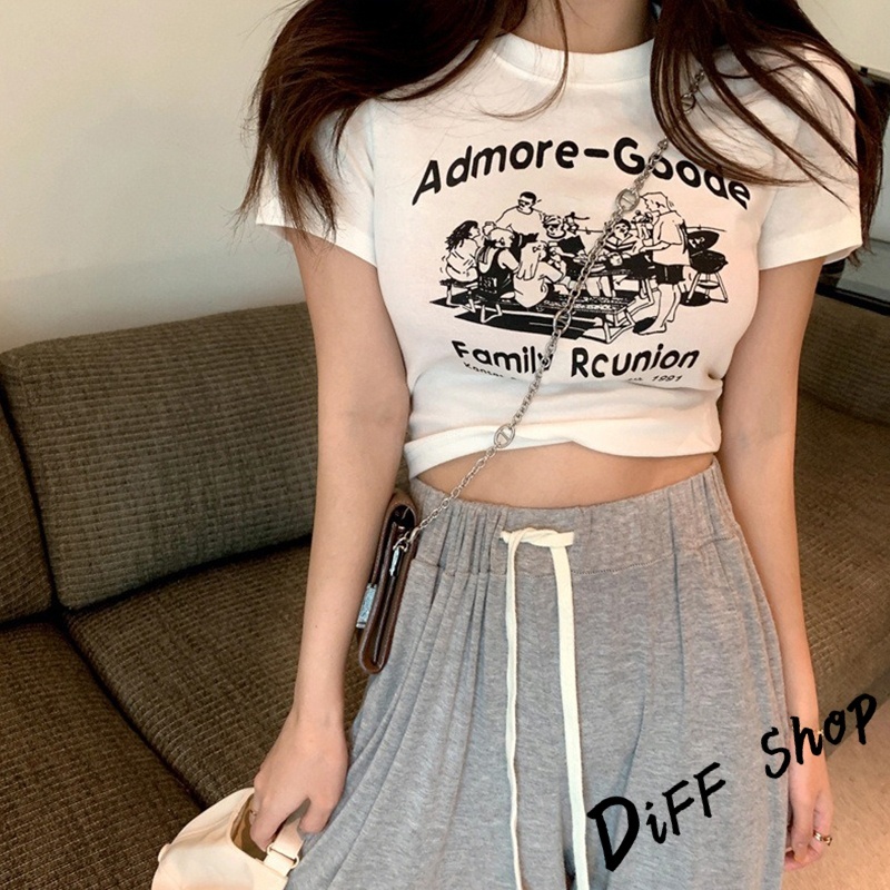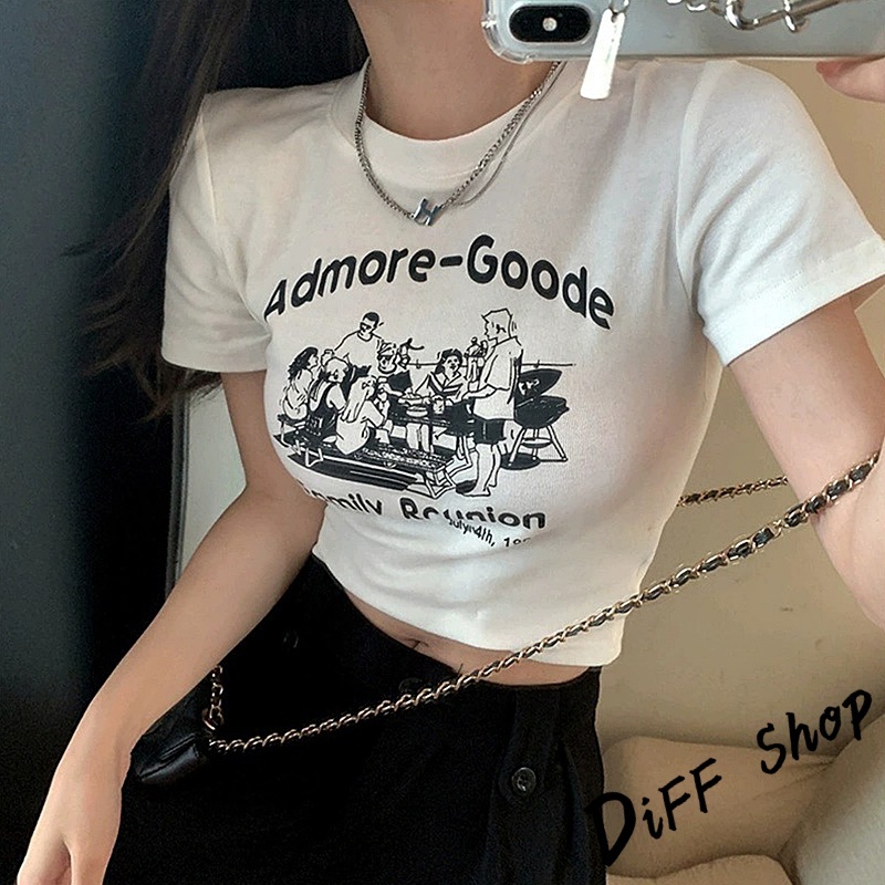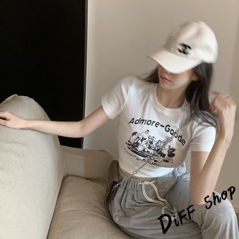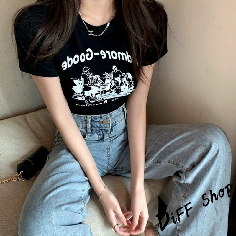 【DIFF】韓版美式復古印花短版上衣 短袖上衣 衣服 夏天女裝 短板上衣 短版t恤 女裝 短袖t恤女【T675】【T675】黑色|【T675】白色T-shirtsDiFF shop