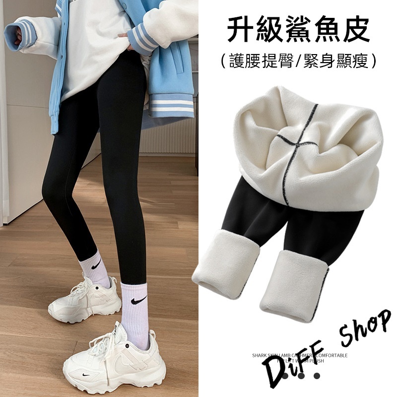 【DIFF】韓版高腰顯瘦加厚內刷毛鯊魚褲 瑜珈褲 緊身褲 褲子 長褲 休閒褲 女裝 黑褲 發熱褲 保暖褲【P140】