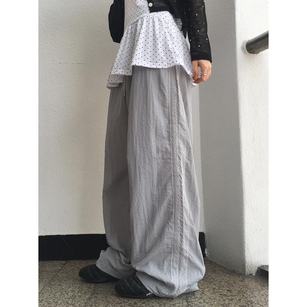 Codibook|韓國 ondeed 蕾絲拼接兩穿寬褲-灰色寬鬆運動風尼龍長褲[預購]長褲 闊腿褲 女裝黑,FREE|淺薄荷,FREE|天空藍,FREE|象牙白,FREE|粉紅色,FREEPantsCodibook 韓國女裝購物平台