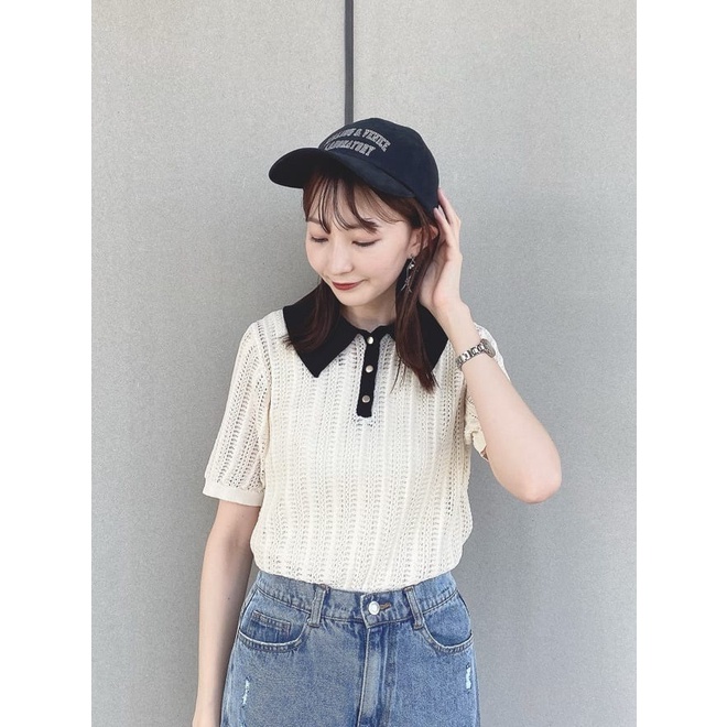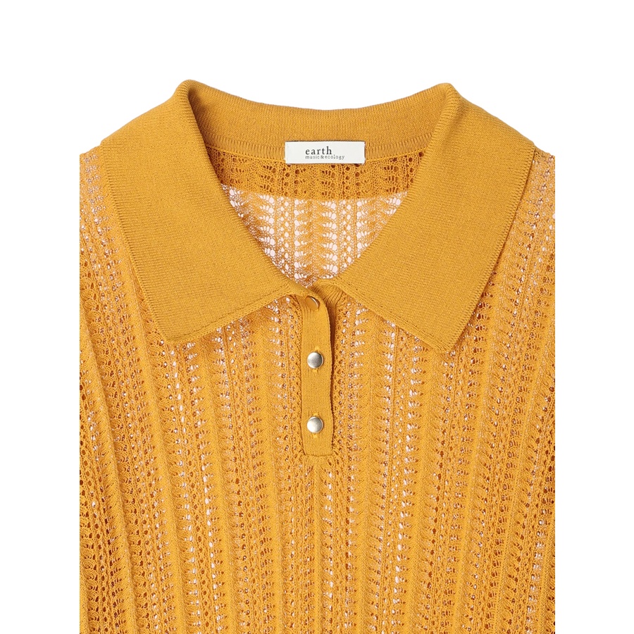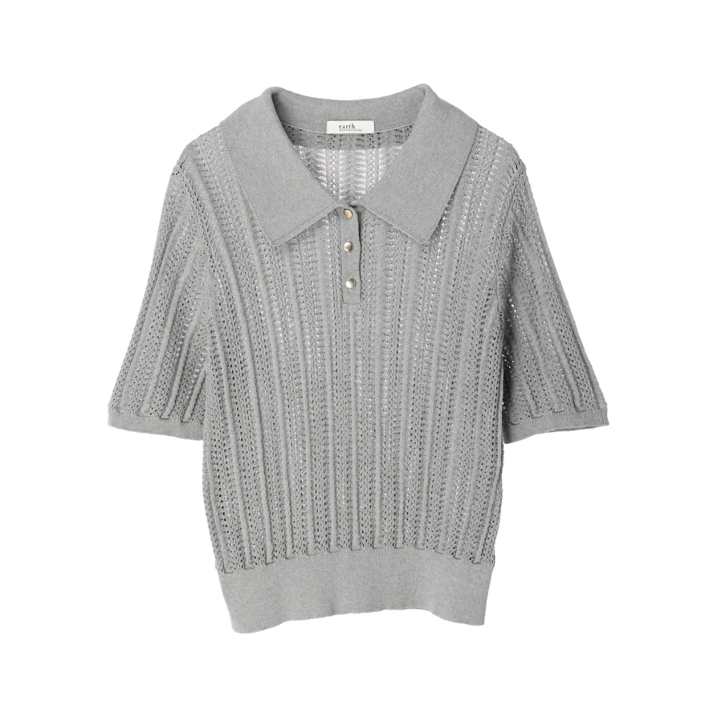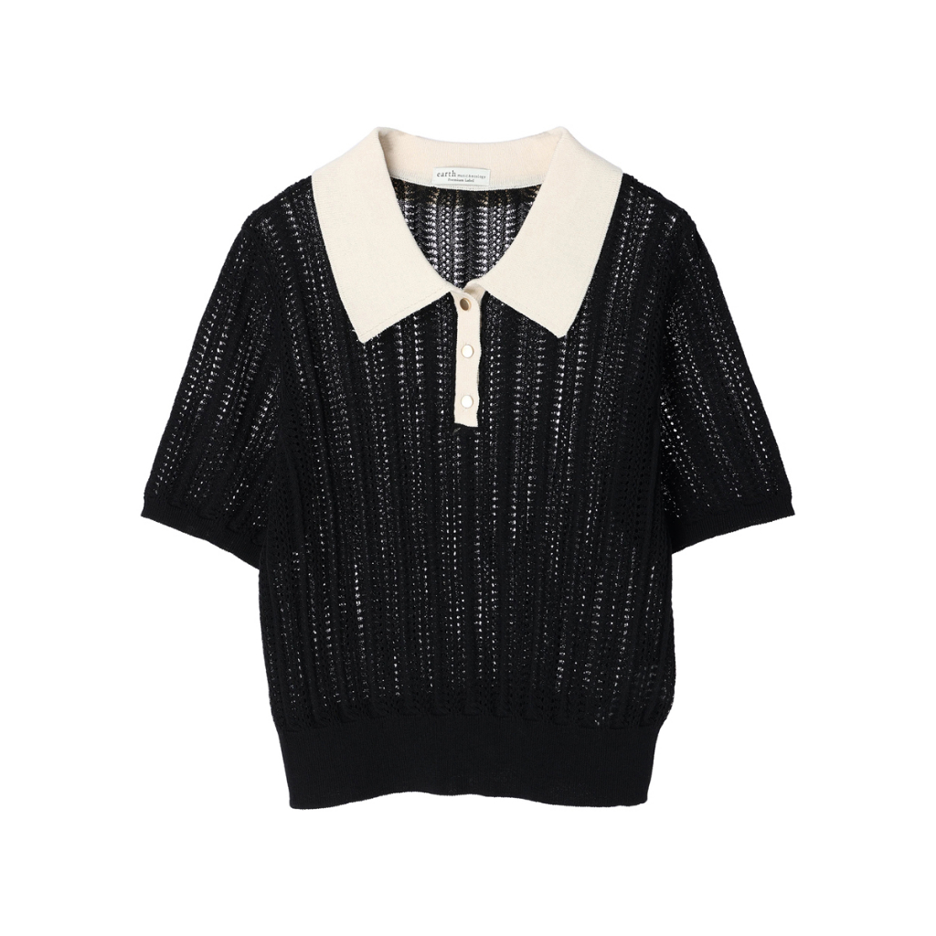 earth music&ecology 鏤空短袖針織POLO衫(1M23L2C0100)黃色F|本白F|灰色F|黑色FPolo Shirtsearth music&ecology Select Store
