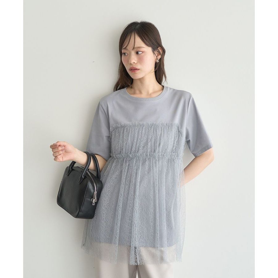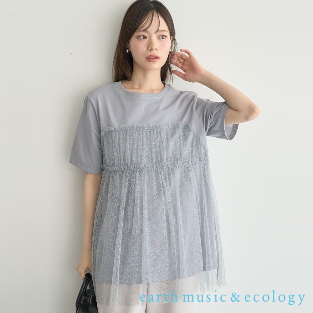 earth music&ecology 精緻蕾絲薄紗拼接短袖T恤(01000671800)象牙色F|炭灰色F|灰藍色FT-shirtsearth music&ecology Select Store