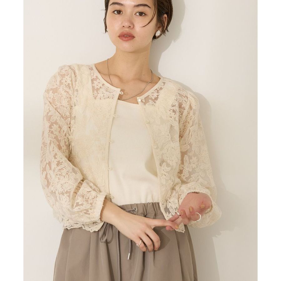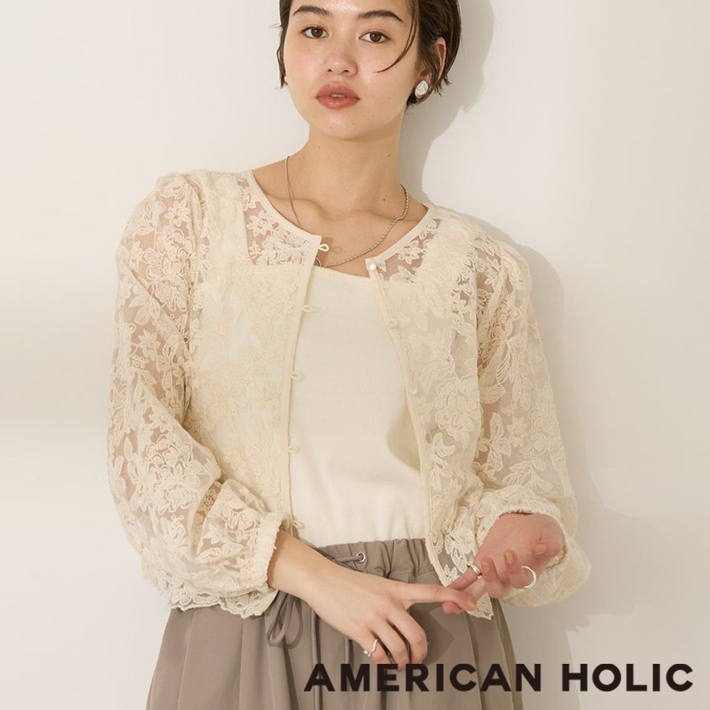AMERICAN HOLIC 2WAY前後兩穿透明蕾絲刺繡花卉上衣(0H000016200)象牙色M|黑色MT-shirtsearth music&ecology Select Store