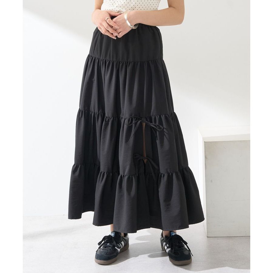 earth music&ecology 側開衩蝴蝶綁結設計分層式剪裁長裙(01000688400)本白F|黑色Fearth music&ecology Select Store