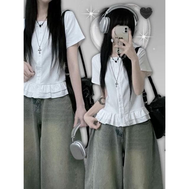 Codibook|韓國 ccomeng 荷葉邊層次造型圓領短袖開襟衫[預購]針織外套 雪紡襯衫 女裝象牙白,one size|灰色,one size|黑色,one sizeWinter Jackets & CoatsCodibook 韓國女裝購物平台