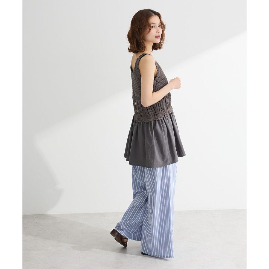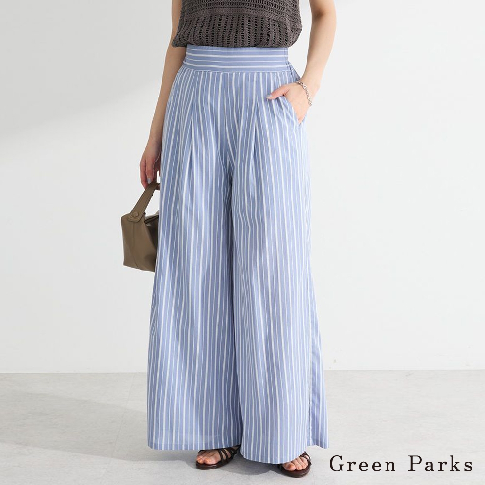 Green Parks 雙色條紋前抓褶寬褲(06000811600)黑色F|米色F|藍色FPantsearth music&ecology Select Store