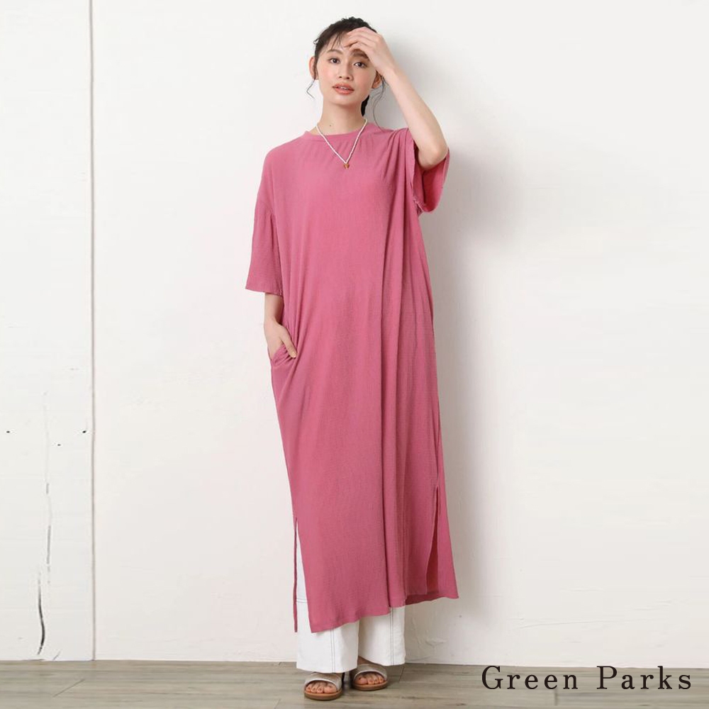 Green Parks 微透下擺側開衩素面連身洋裝(6P46L0H0300)象牙色F|黑色F|粉紅色Fearth music&ecology Select Store