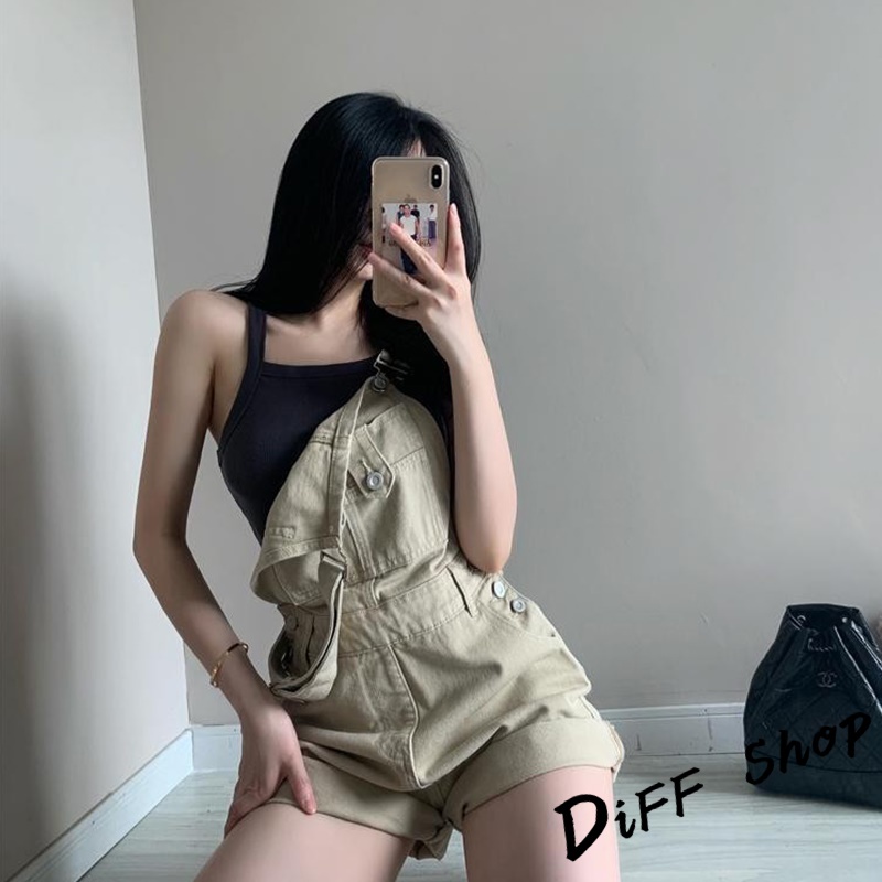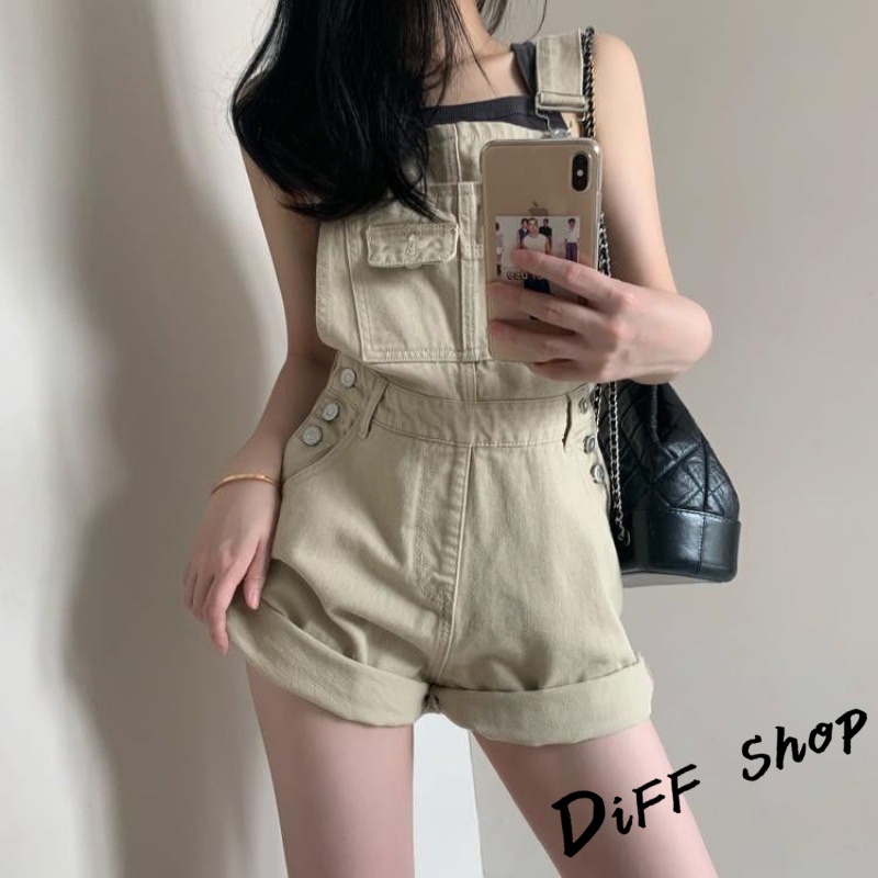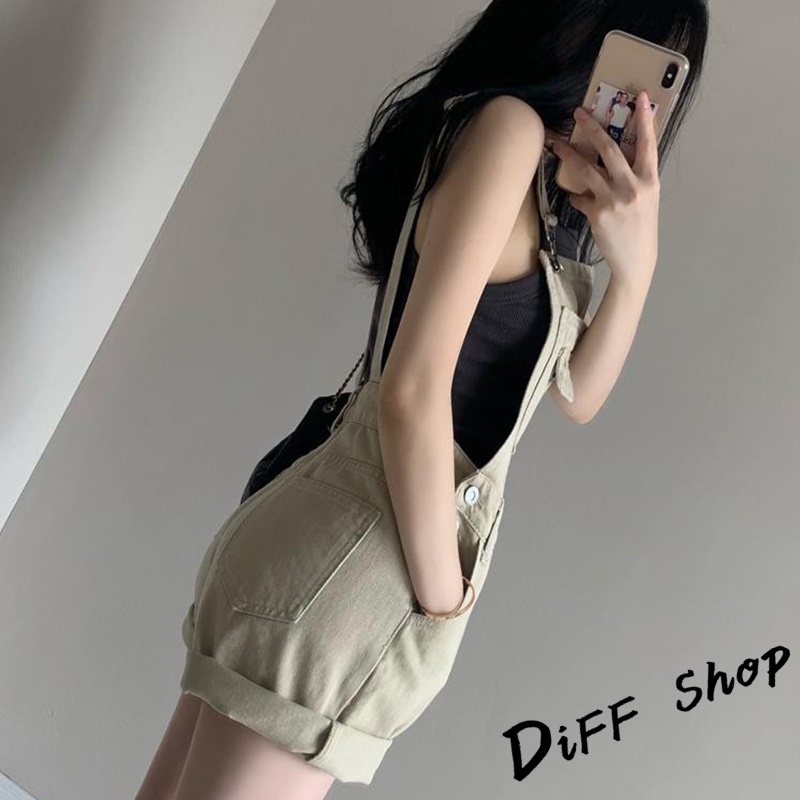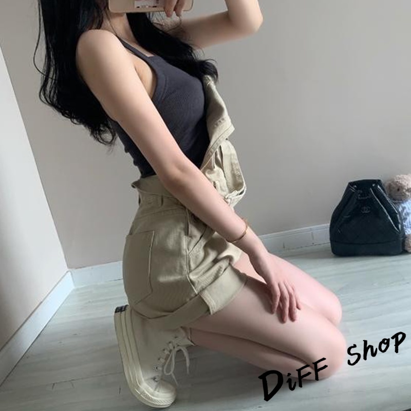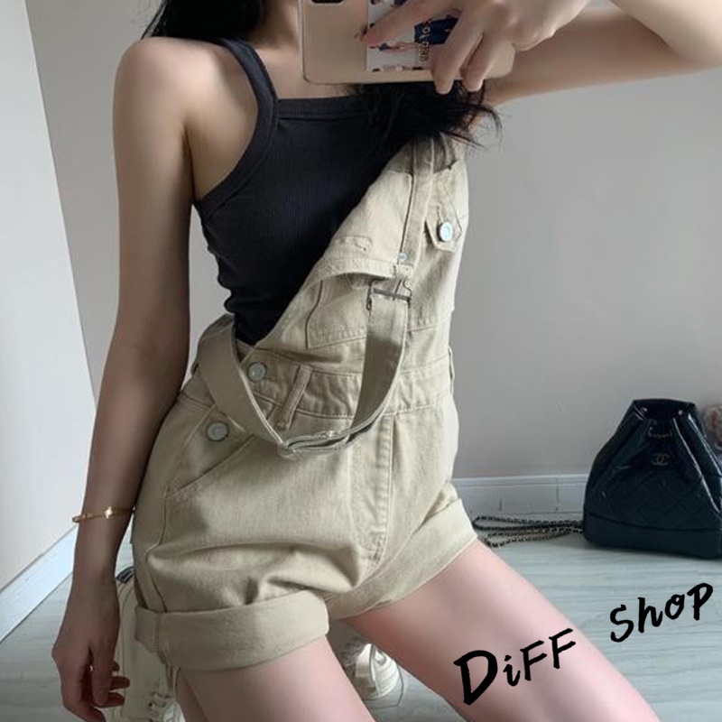 【DIFF】韓版復古工裝吊帶牛仔短褲 吊帶褲 休閒褲 短褲 褲子 女裝 休閒短褲 牛仔吊帶褲【S193】【S193】卡其色OverallsDiFF shop
