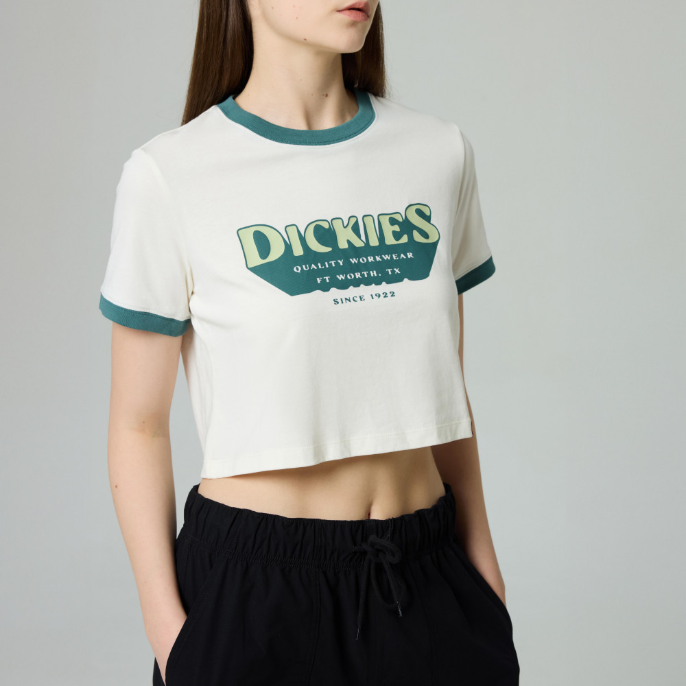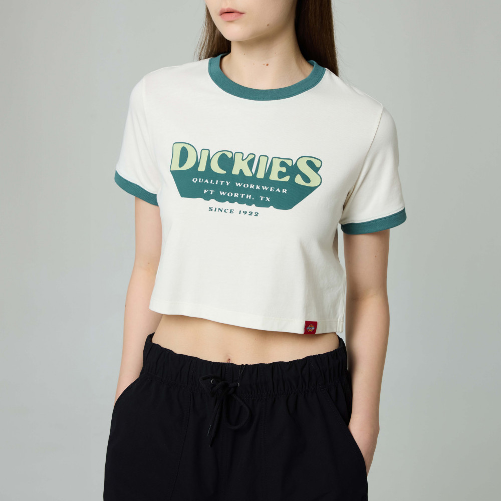 Dickies女款米白色純棉胸前圖案印花設計短版短袖T恤|DK0A88HWC48XS|S|M|L|XL|2XL|3XLT-shirtsDickies Taiwan 官方直營店