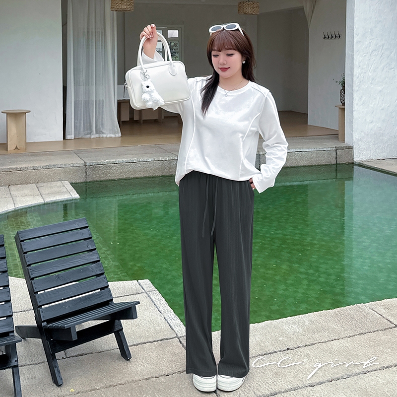 CCGIRL中大尺碼 時髦垂墜感坑紋綁繩落地寬鬆長褲(全鬆緊+有口袋)-共2色-適XL~5L《20599》大尺碼女裝長褲坑紋長褲-經典黑,XL|坑紋長褲-經典黑,2L|坑紋長褲-經典黑,3L|坑紋長褲-經典黑,4L|坑紋長褲-經典黑,5L|坑紋長褲-沉穩深灰,XL|坑紋長褲-沉穩深灰,2L|坑紋長褲-沉穩深灰,3L|坑紋長褲-沉穩深灰,4L|坑紋長褲-沉穩深灰,5LPantsCCGIRL中大尺碼女裝