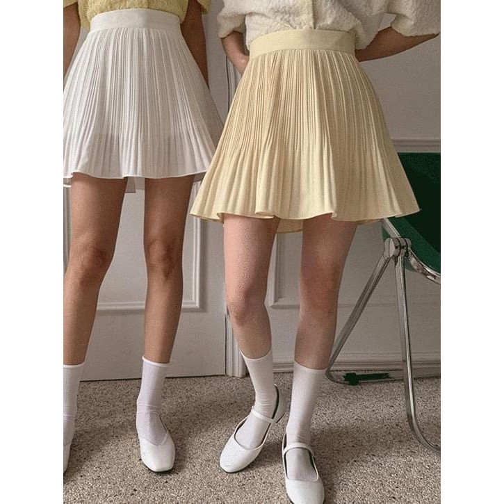 Codibook|韓國 Qnigirls 鬆緊A字百褶短裙[預購]裙子 百褶裙 女裝象牙白-天空藍 著用|米褐色|黃色-staff 著用|粉紅色|天空藍|黑色Codibook 韓國女裝購物平台
