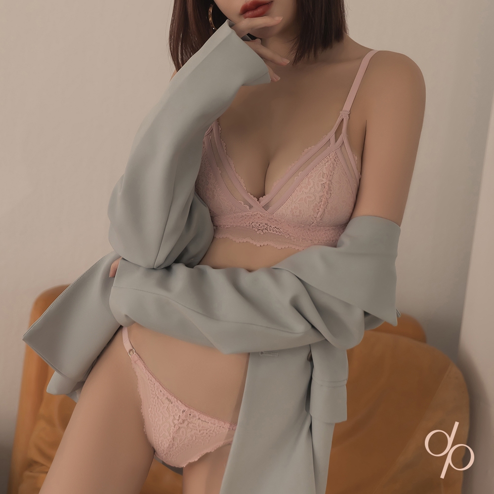 【DEPIC】深V蕾絲美背無襯無鋼圈三角杯內衣組 (粉色)|dp select粉色S|粉色M|粉色L|粉色XLSetsDEPIC