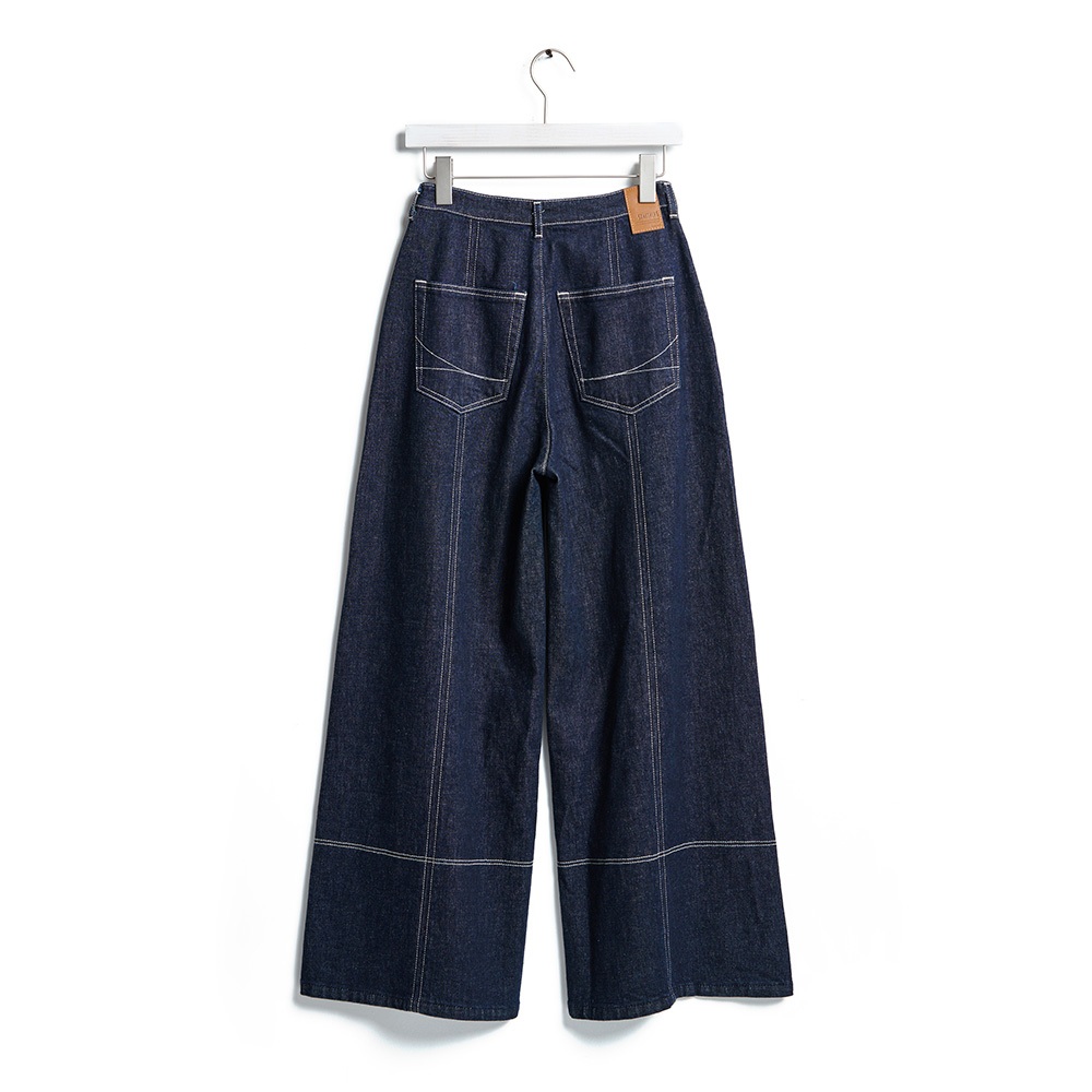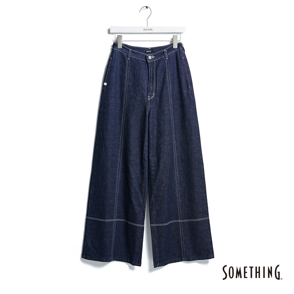 SOMETHING 女款 口袋壓線設計丹寧寬褲(原藍色)L|S|MEDWIN 官方旗艦店