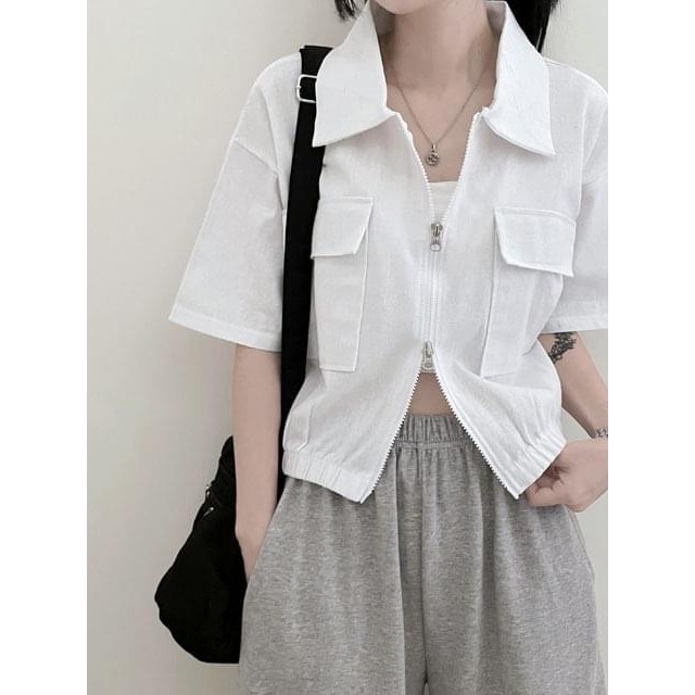Codibook|韓國 ccomeng 雙拉鍊口袋翻領短版夾克[預購]夾克 拉鍊外套 女裝白色,one size|淺米,one size|黑色,one sizeJacketsCodibook 韓國女裝購物平台