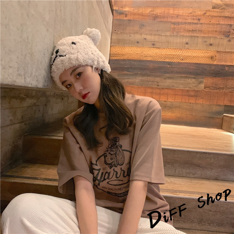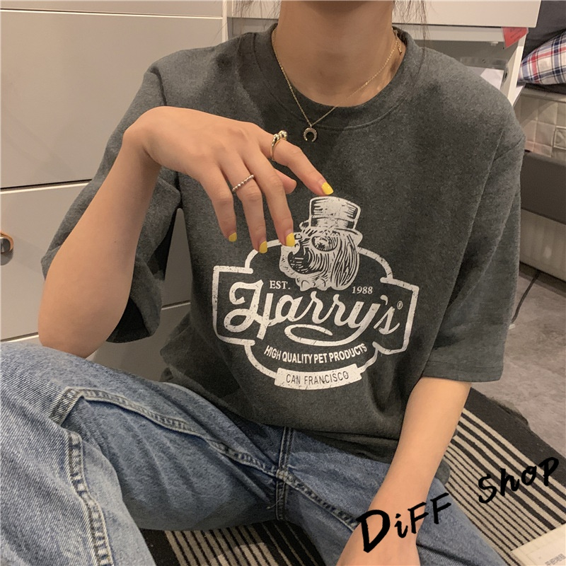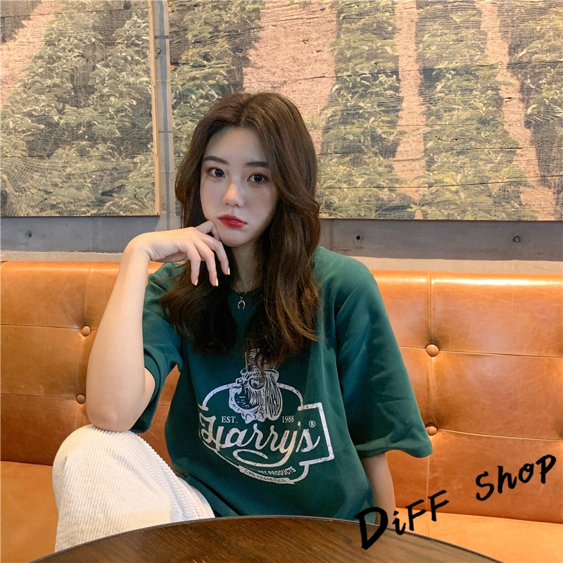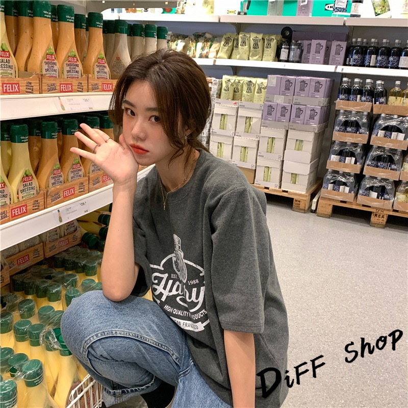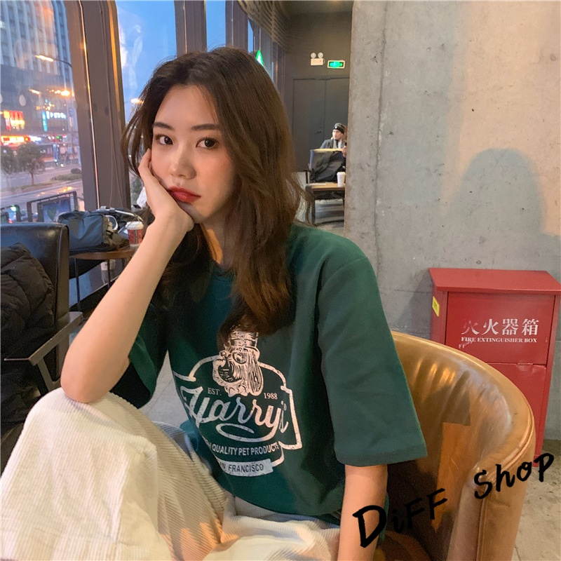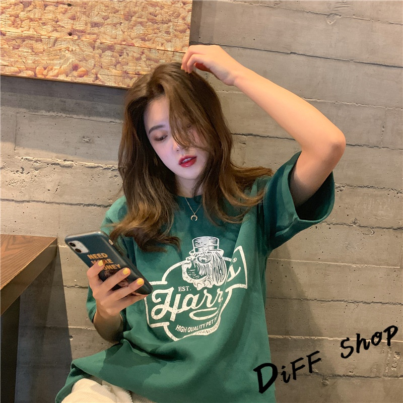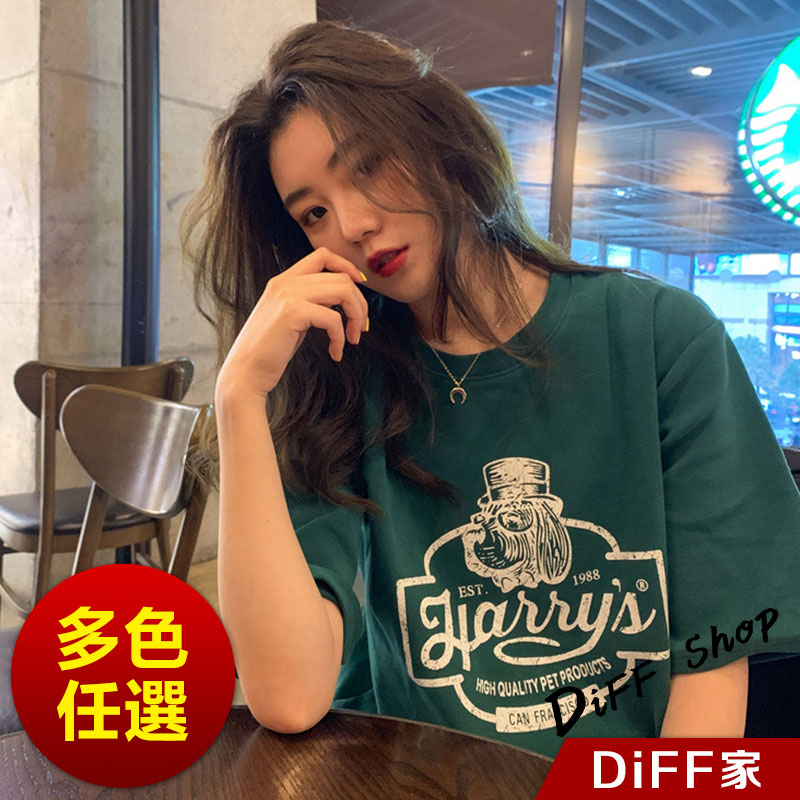 【DIFF】韓版寬鬆圖案短袖上衣 短袖t恤 女裝 顯瘦上衣 衣服 寬鬆上衣【T553】【T553】墨綠|【T553】卡其|【T553】白色|【T553】深灰T-shirtsDiFF shop