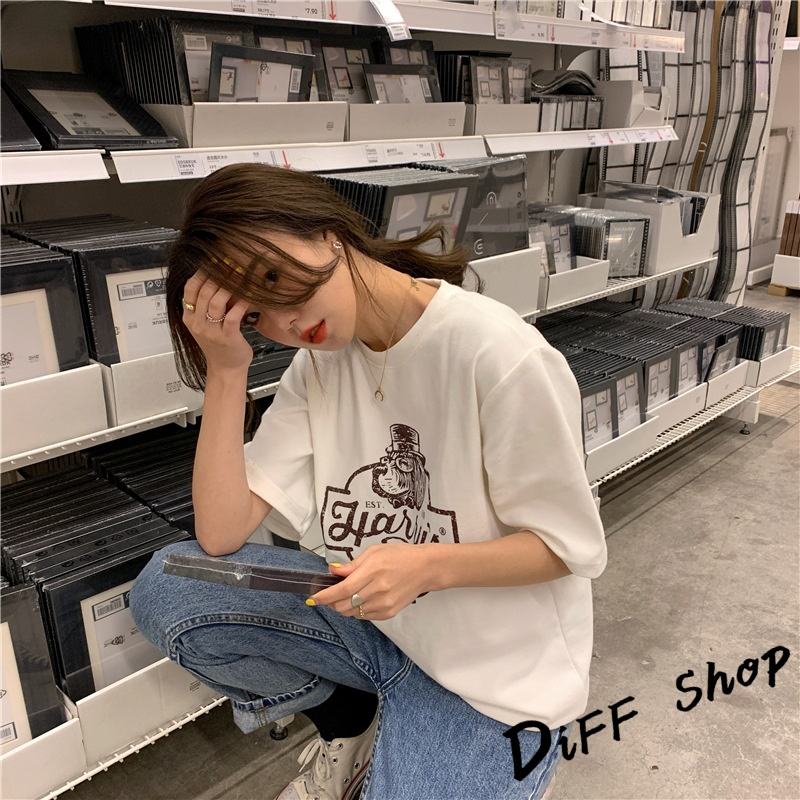 【DIFF】韓版寬鬆圖案短袖上衣 短袖t恤 女裝 顯瘦上衣 衣服 寬鬆上衣【T553】