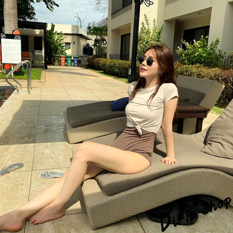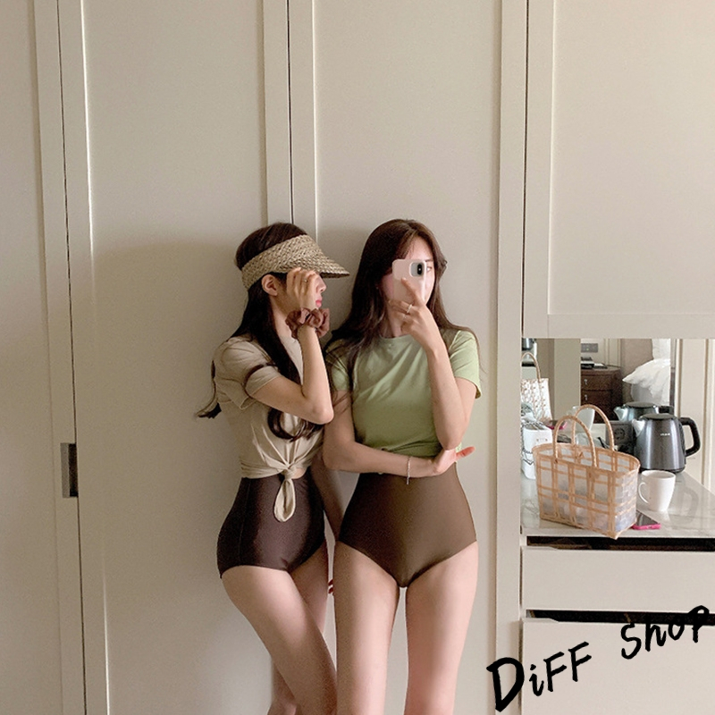 【DIFF】韓版撞色顯瘦兩件式泳衣 帶胸墊 保守泳衣 泳裝 套裝 上衣 女生泳衣 女裝 連身泳衣 S329【S133】【S329】抹茶綠OthersDiFF shop