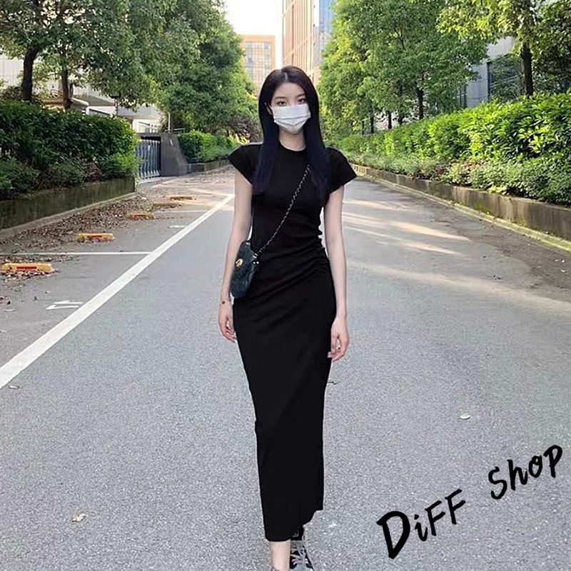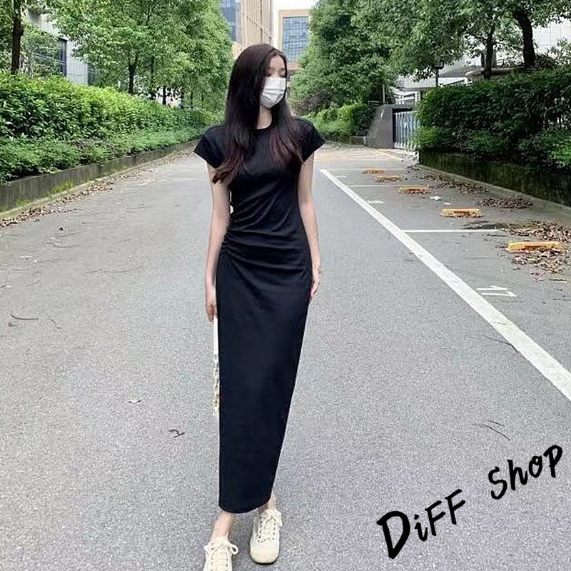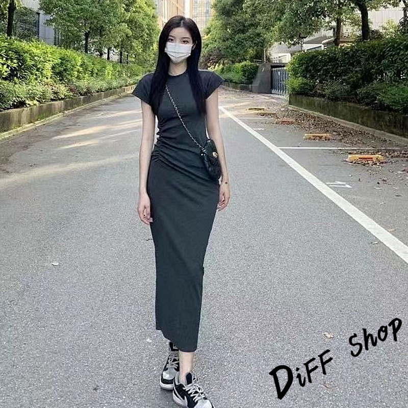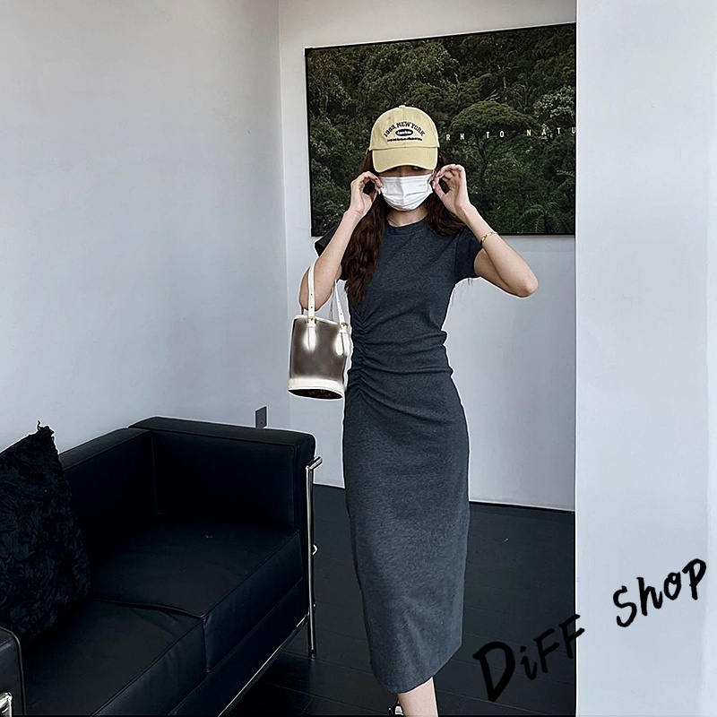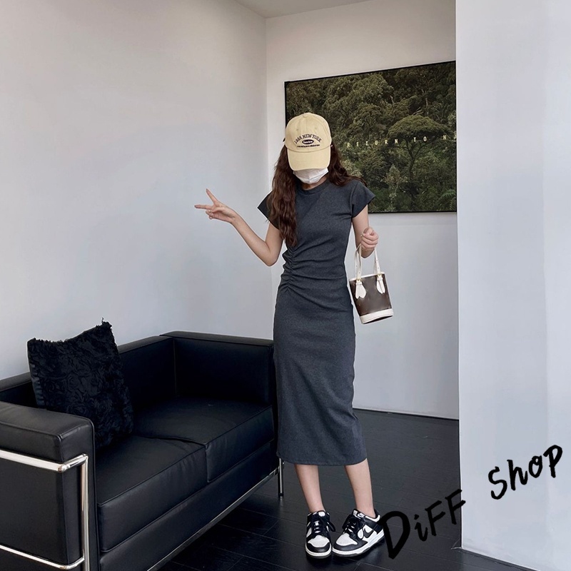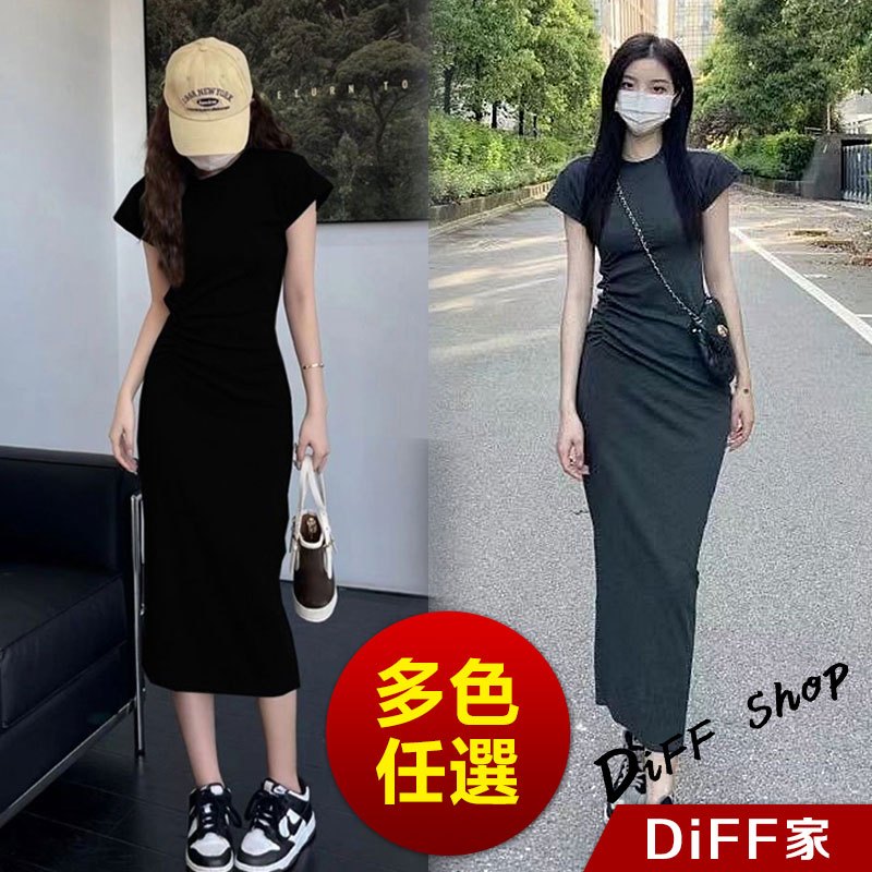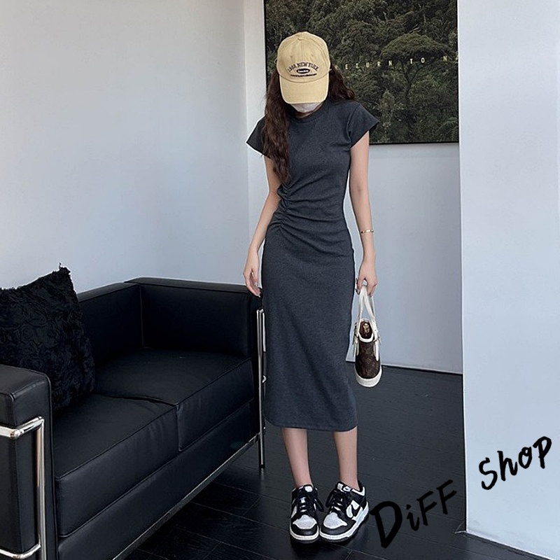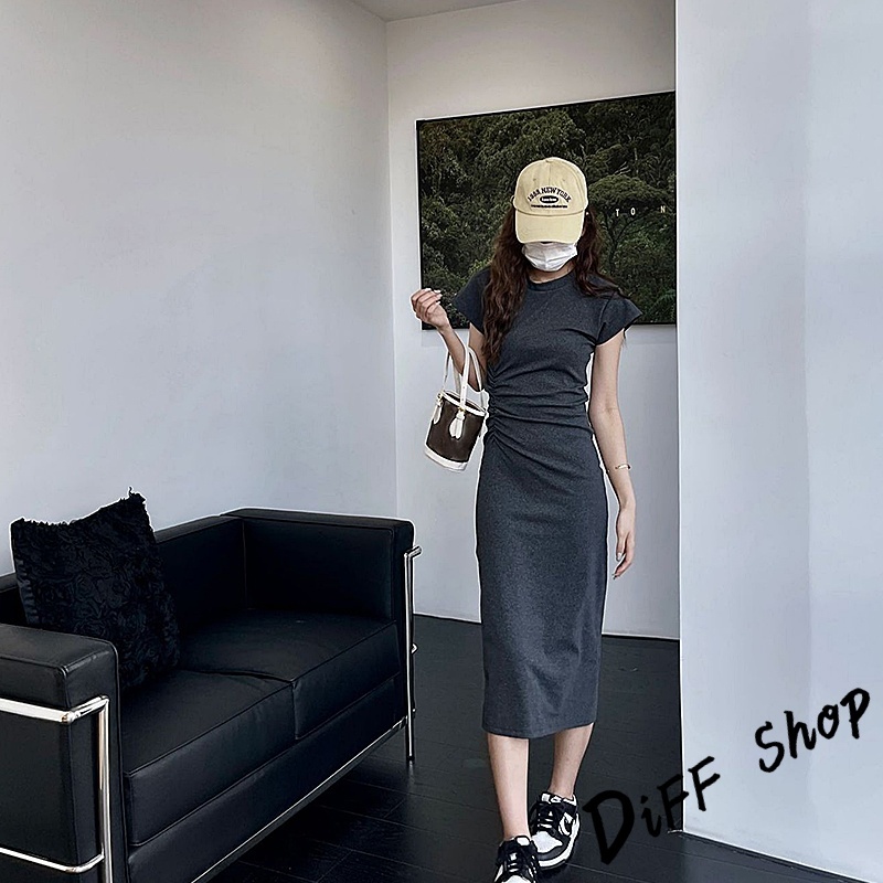 【DIFF】韓版氣質收腰顯瘦小飛袖洋裝 上衣 套裝 短袖上衣 短袖t恤 夏天女裝 連衣裙 連身裙 長裙 裙子【S360】【S360】黑色|【S360】深灰色DiFF shop