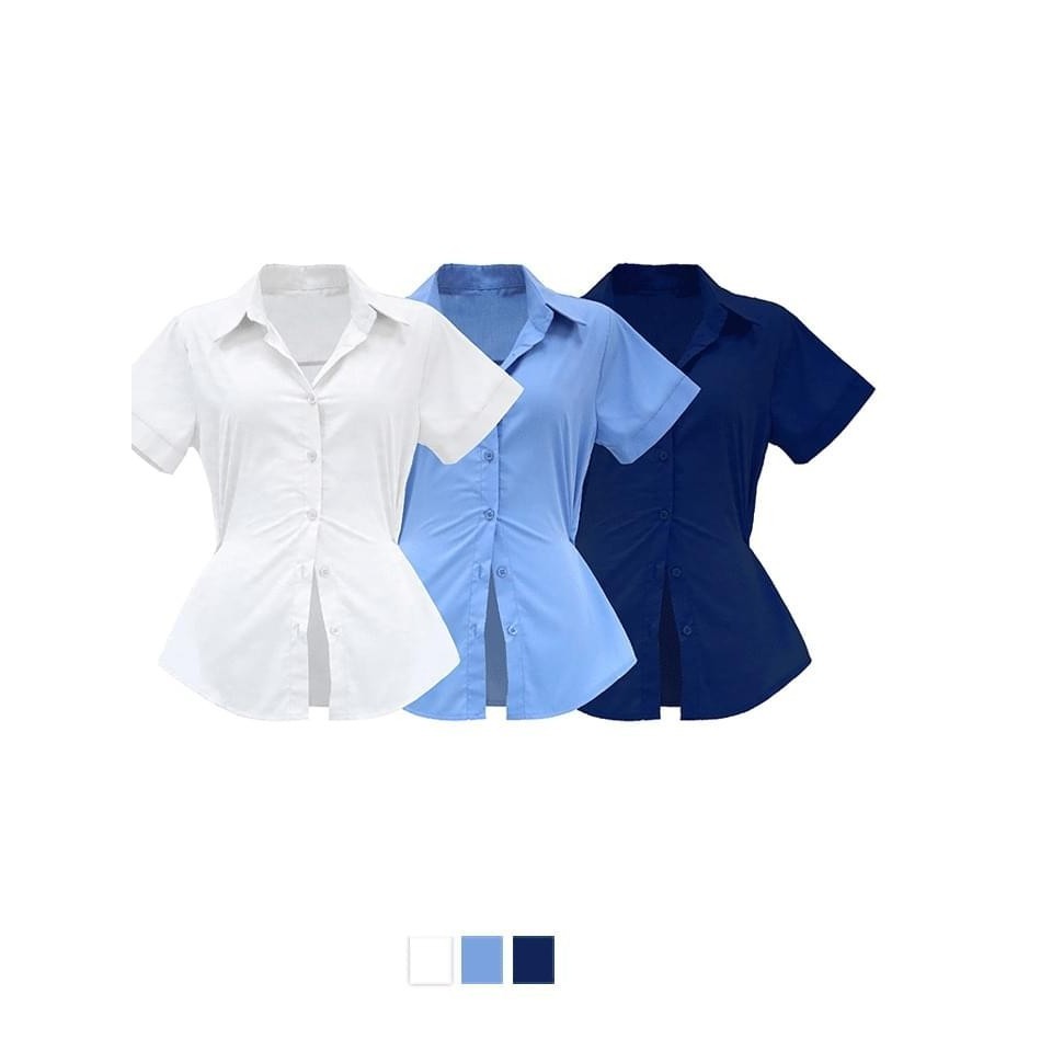 Codibook|韓國 J-BLIN 可收腰雙排扣短袖襯衫[預購]襯衫 女裝白色|天空藍|海軍藍Shirts & BlousesCodibook 韓國女裝購物平台