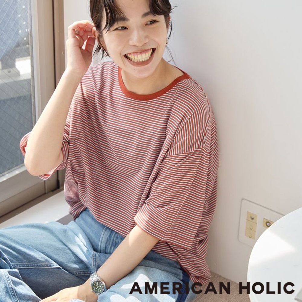 AMERICAN HOLIC 復古疊色條紋落肩短袖上衣(0H000596000)黑色M|黑色L|米色M|米色L|深咖啡色M|深咖啡色L|土紅色M|土紅色LT-shirtsearth music&ecology Select Store
