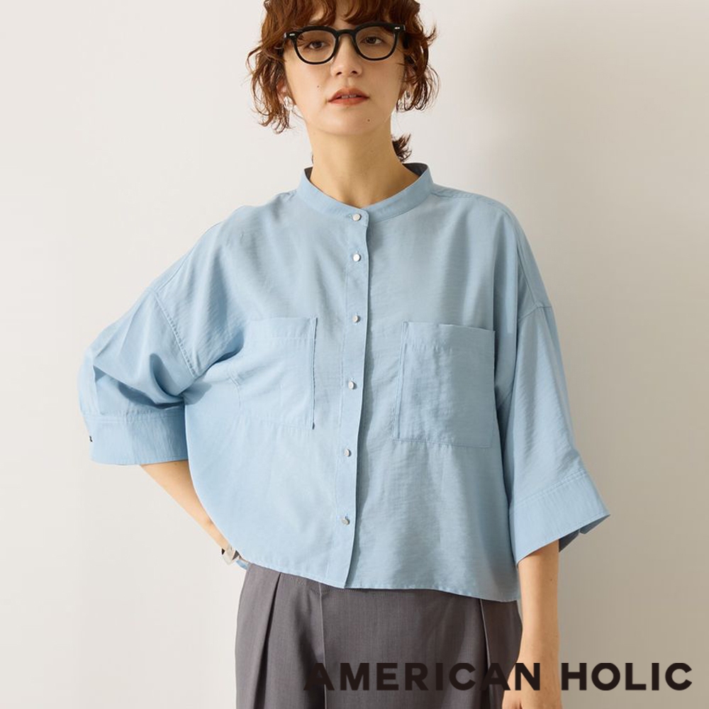 AMERICAN HOLIC 涼感雙口袋圓領五分袖短版襯衫(0H000489600)淡灰色M|淡灰色L|咖啡色M|咖啡色L|駝色M|駝色L|淡青色M|淡青色LShirts & Blousesearth music&ecology Select Store