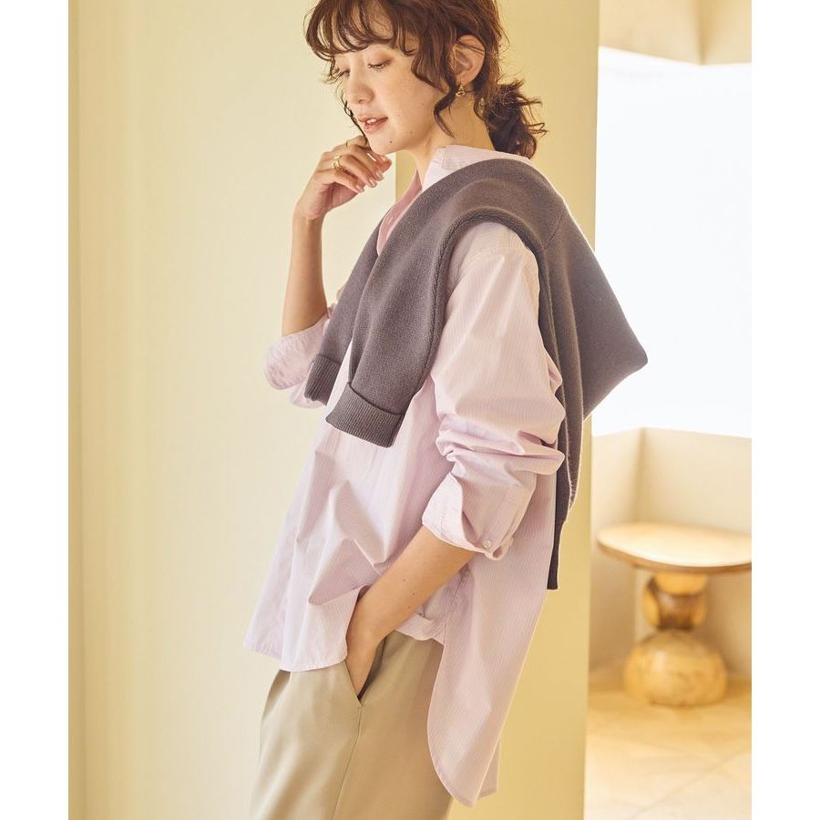 AMERICAN HOLIC 素面/條紋後抓褶開衩長版襯衫(HA51L0A0530)本白M|淡青色M|條紋淡青色M|條紋綠色M|條紋黃色M|條紋粉紅色MShirts & Blousesearth music&ecology Select Store