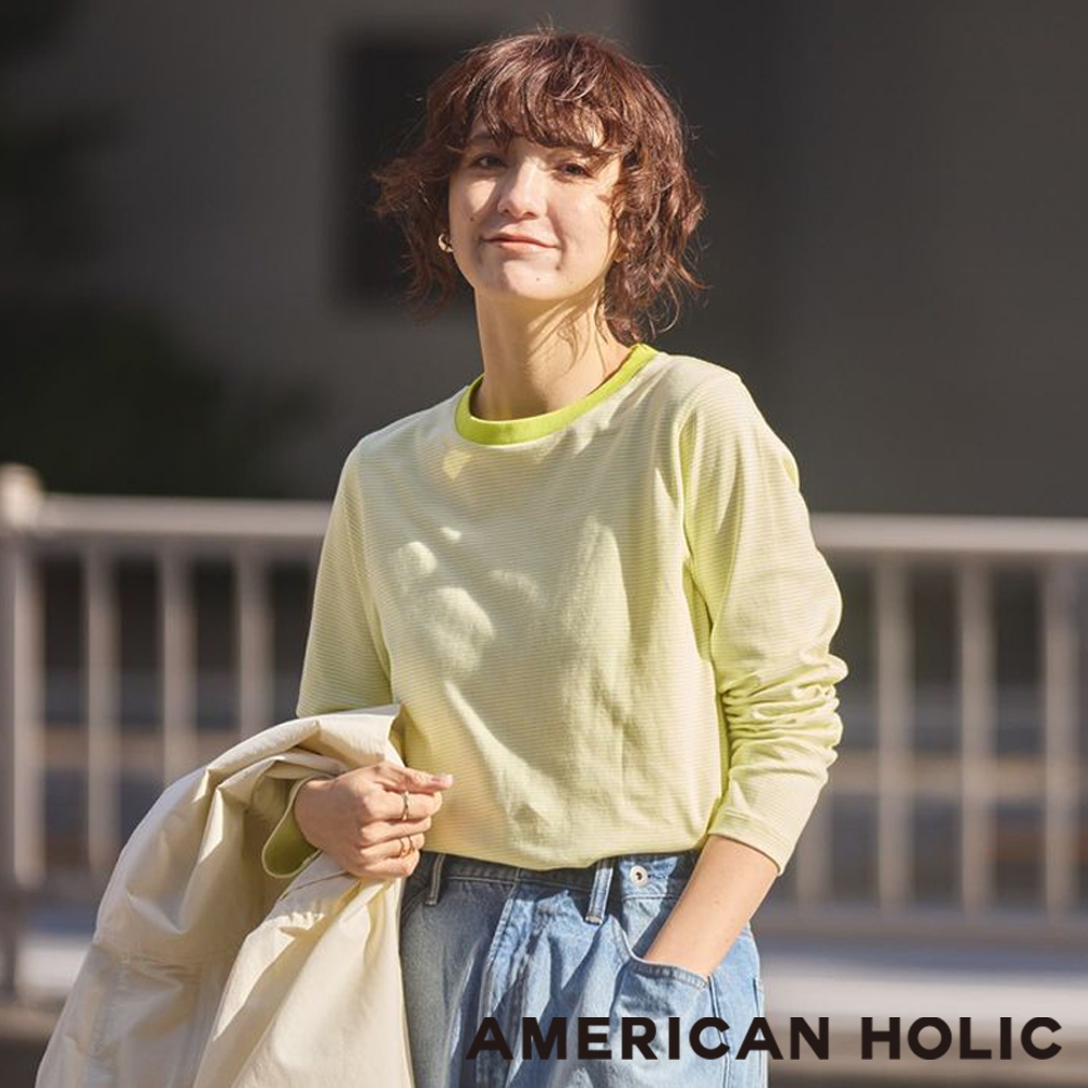 AMERICAN HOLIC 素面/邊框條紋圓領棉質上衣(HA51L1C0300)本白M|黑色M|紅色M|黃色M|本白S|本白L|黑色S|黑色L|紅色S|紅色L|黃色S|黃色LT-shirtsearth music&ecology Select Store