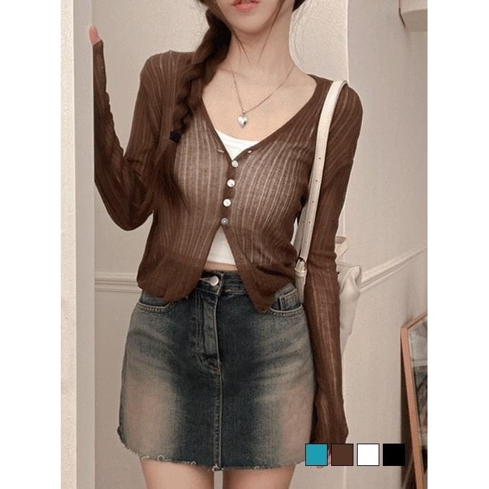 Codibook|韓國 gifteabox 透視開衩V領短版針織外套[預購]針織外套 女裝咖啡色,FREE|象牙白,FREE|天空藍,FREE|黑色,FREEWinter Jackets & CoatsCodibook 韓國女裝購物平台
