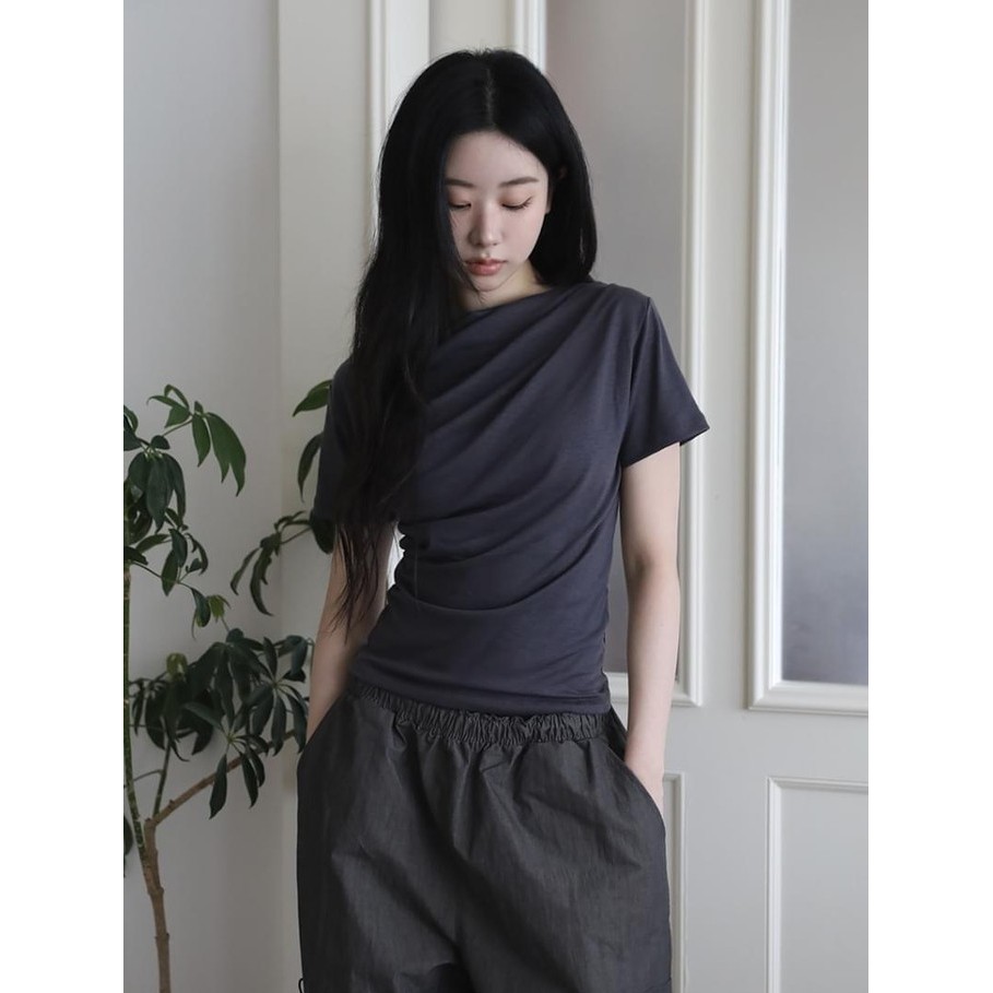 Codibook|韓國 COLOR iN ID 垂墜剪裁圓領短袖T恤[預購]短袖上衣 T恤 女裝白色,FREE|灰色,FREE|深灰色,FREE|黑色,FREET-shirtsCodibook 韓國女裝購物平台