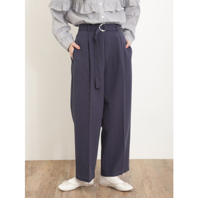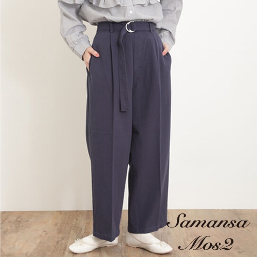 Samansa Mos2 腰帶設計純棉直筒剪裁長褲(FL42L0F0380)象牙色F|深咖啡色F|卡其色F|深藍色FPantsearth music&ecology Select Store
