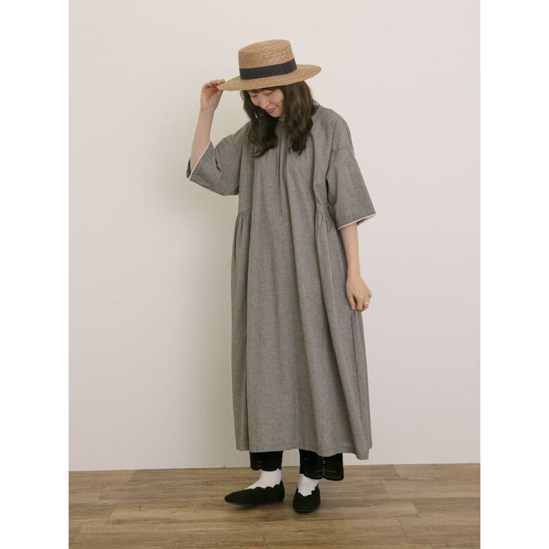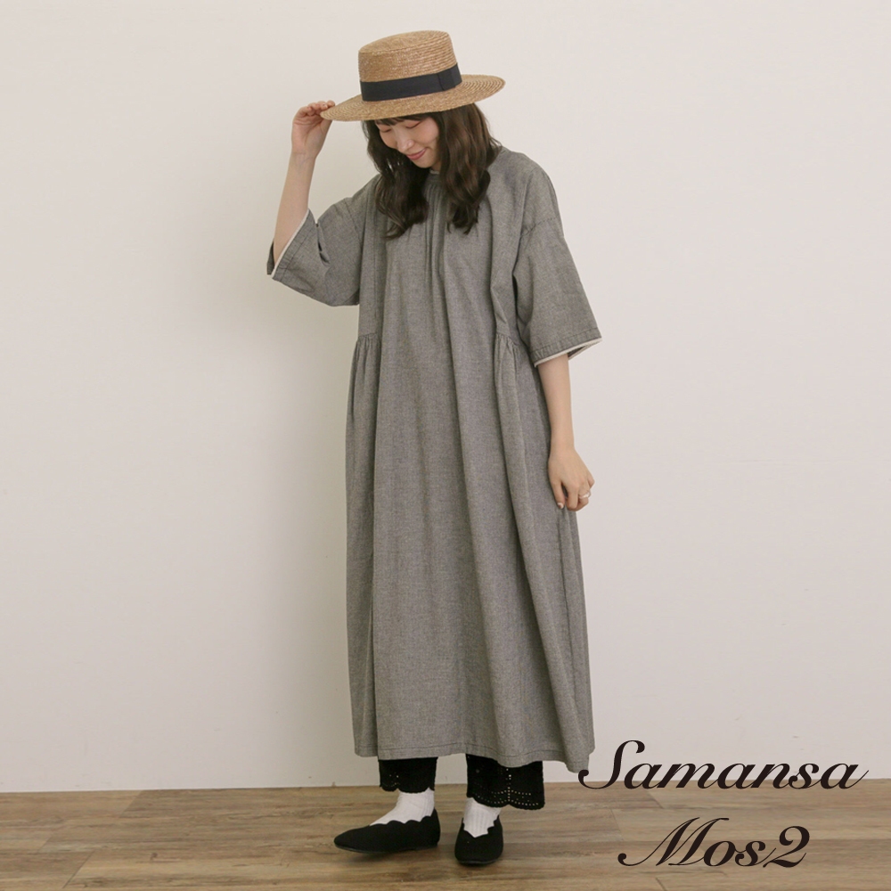 Samansa Mos2 2WAY前後兩穿素面/格紋蕾絲邊綁帶洋裝(0F001022310)炭灰色M|米色M|淡紫色Mearth music&ecology Select Store