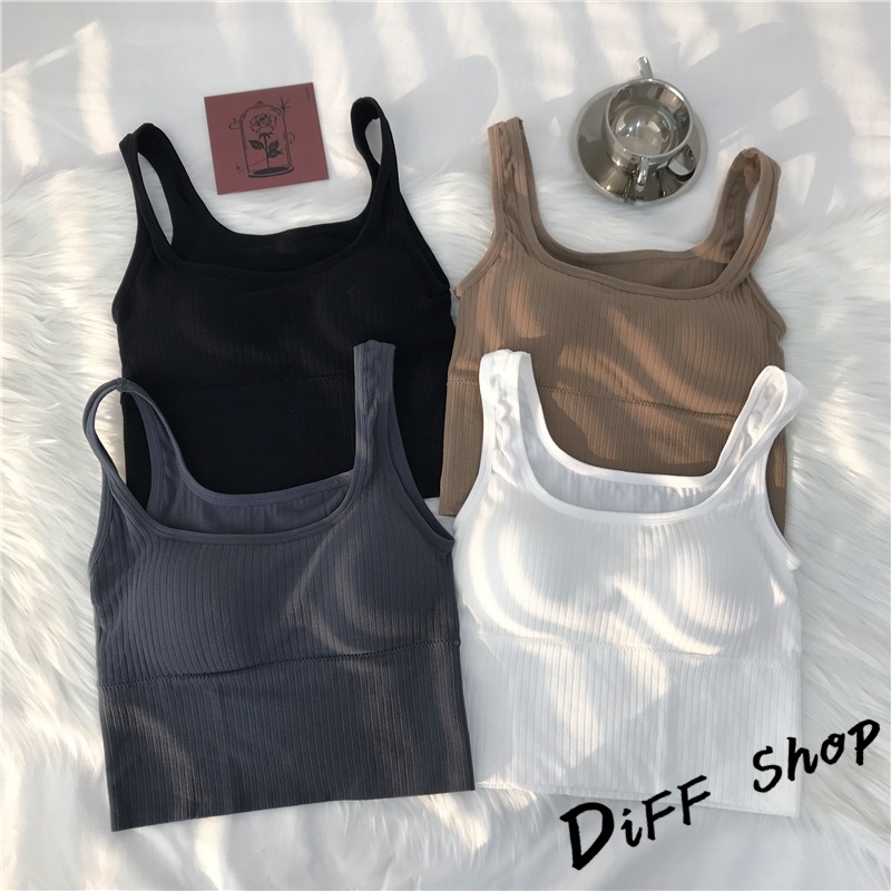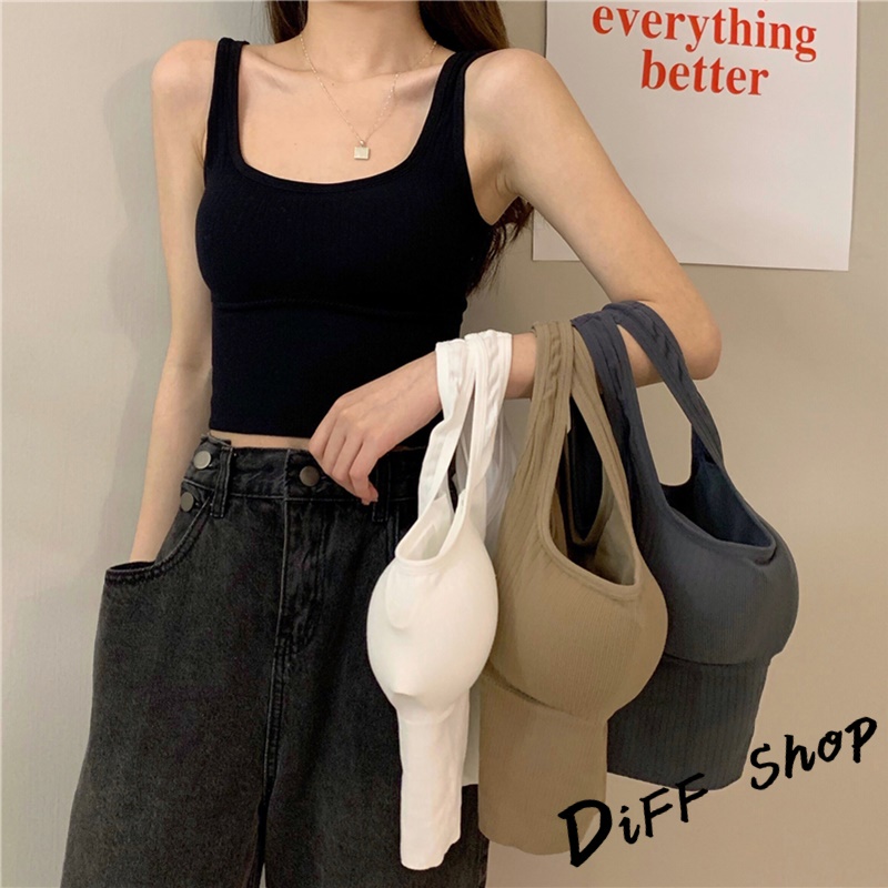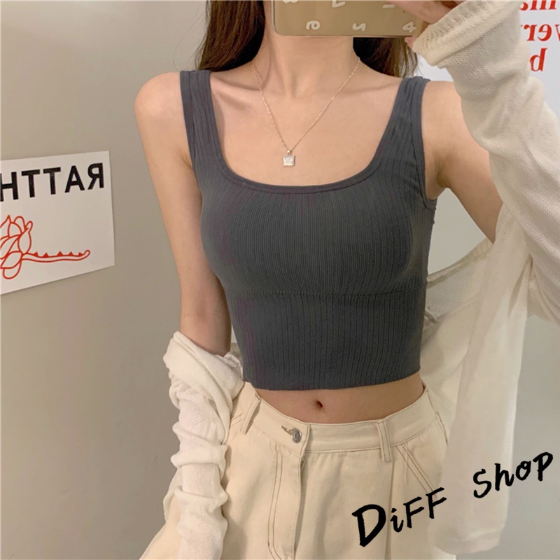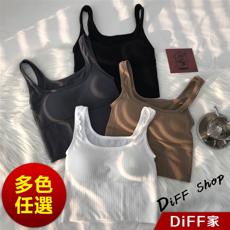 【DIFF】韓版修身百搭寬肩無縫針織背心 帶胸墊免穿內衣 上衣 小可愛 女裝 背心女 衣服 短版上衣【V166】【V166】奶茶色|【V166】灰色|【V166】黑色|【V166】白色Tube TopsDiFF shop