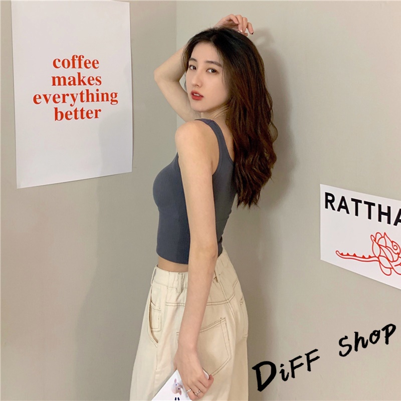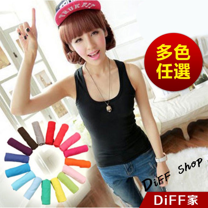【DIFF】韓版舒適彈性背心 四季百搭背心 內搭小可愛 女裝 上衣 衣服 素T T恤【V01】【V01】白色|【V01】灰色|【V01】黑色|【V01】粉Tanks & CamisolesDiFF shop