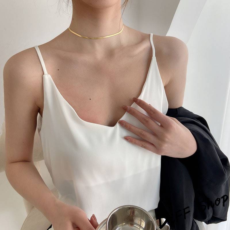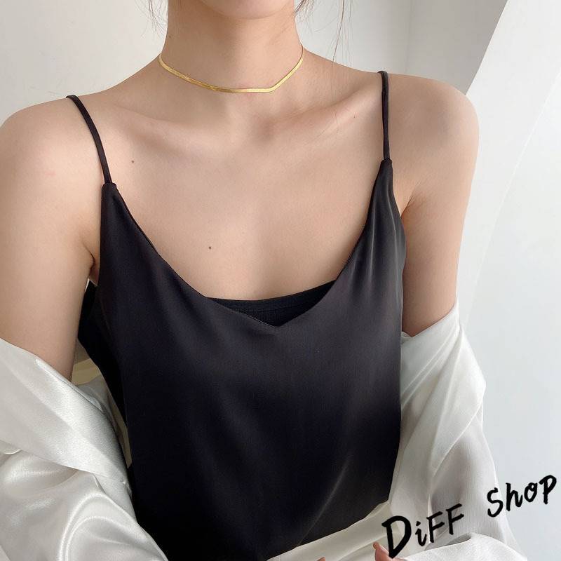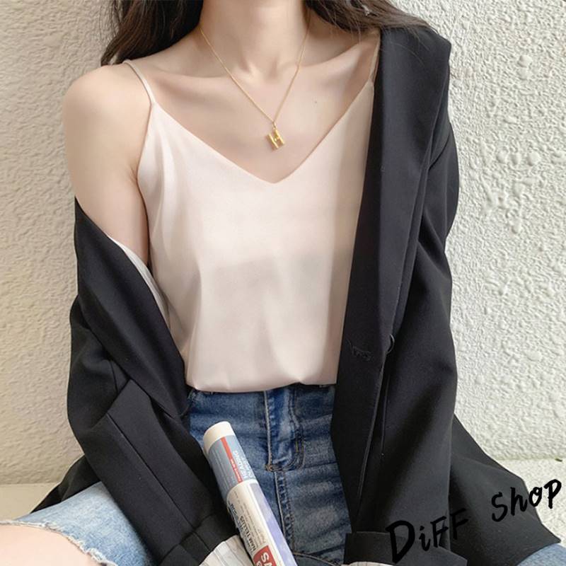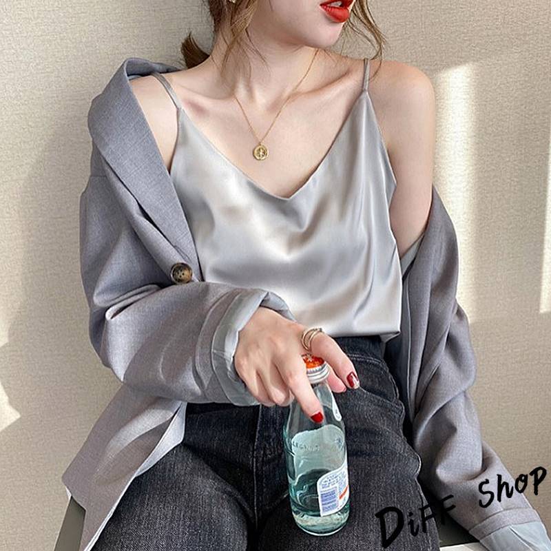 【DIFF】韓版緞面V領寬鬆顯瘦吊帶背心 上衣 小可愛 女裝 衣服【V334】