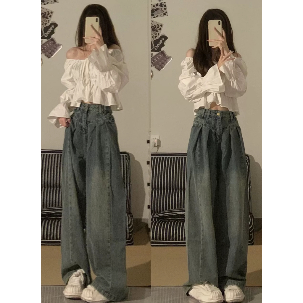 無敵好穿推薦入 牛仔褲 長褲 寬鬆牛仔褲 韓版牛仔褲 直筒褲 顯瘦直筒褲 高腰拖地褲 設計感 夏天長褲 女直筒褲 高腰褲圖片色,L|圖片色,S|圖片色,MCHAOO 台北原創服飾品牌