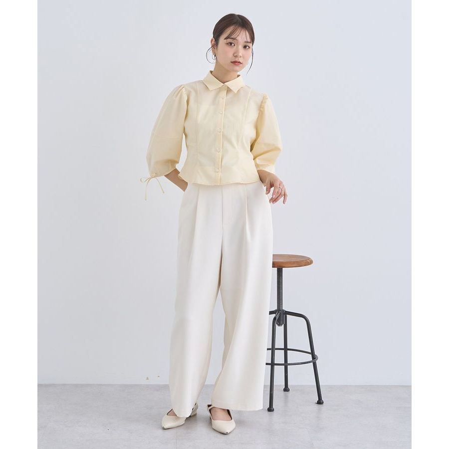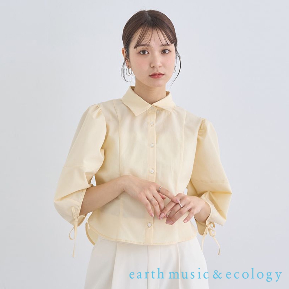 earth music&ecology 素面/條紋蓬袖綁結七分袖襯衫(01000118200)白色F|淡青色F|奶油色FShirts & Blousesearth music&ecology Select Store
