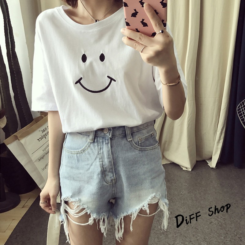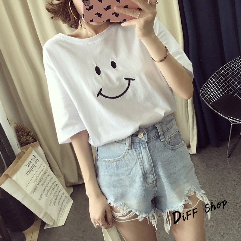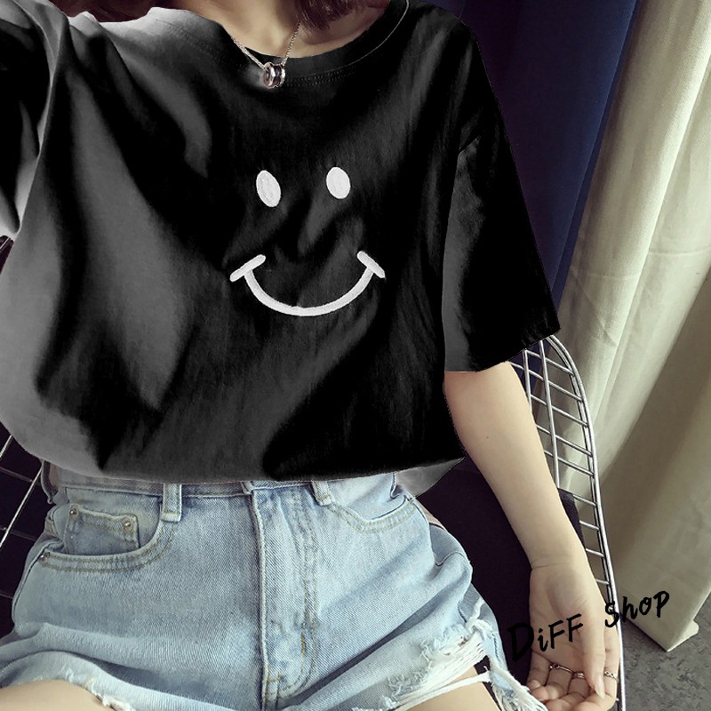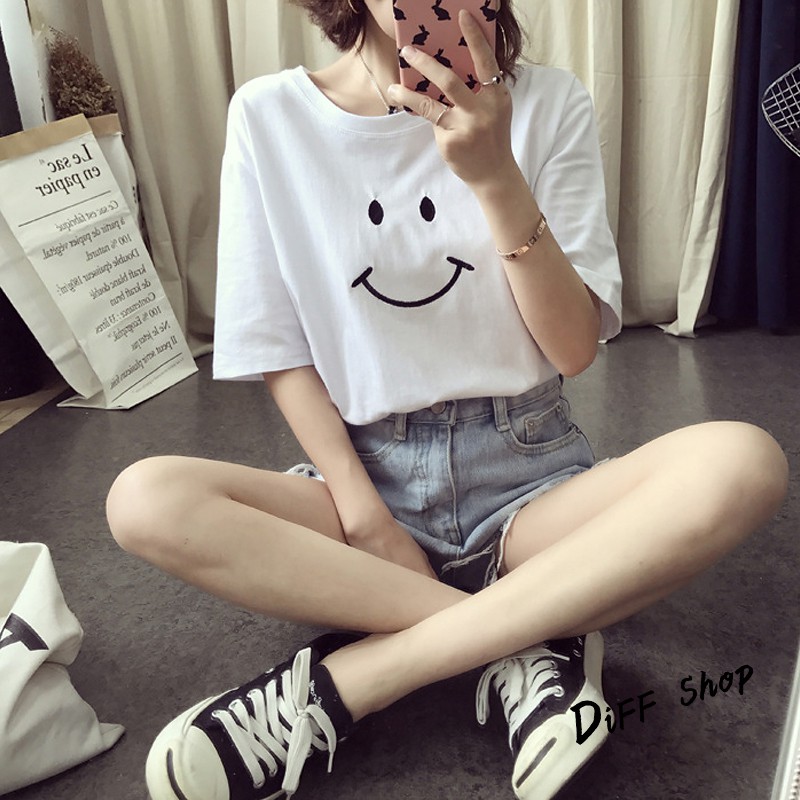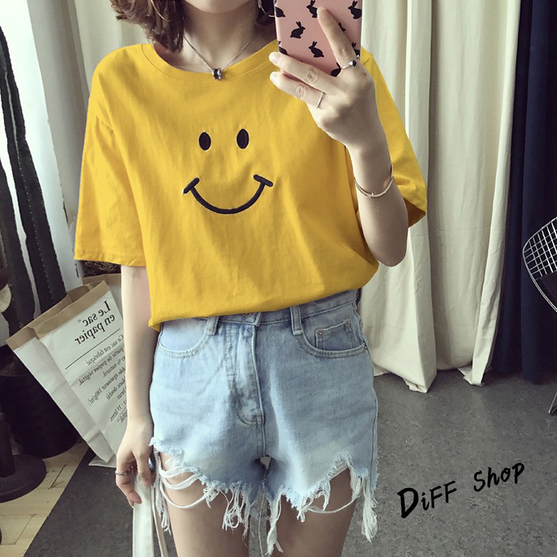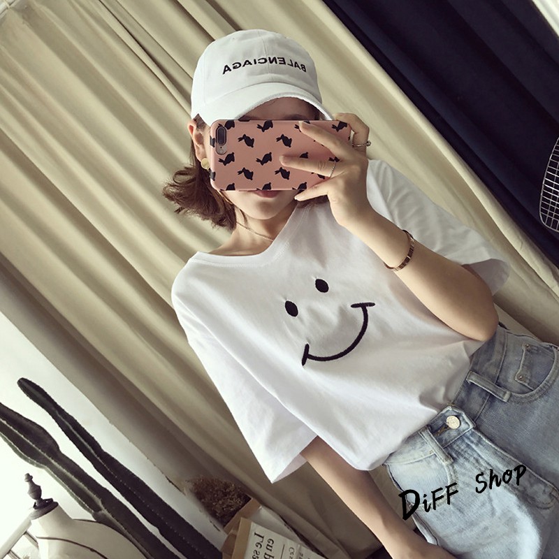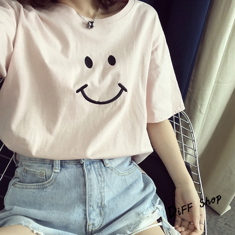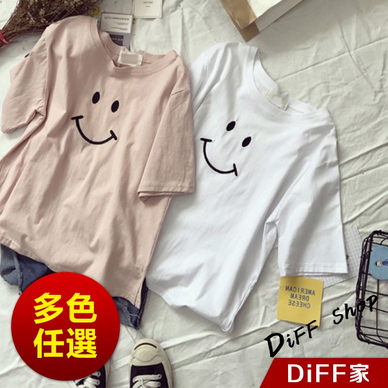 【DIFF】夏季新款韓版微笑短袖上衣 短袖t恤 女裝 顯瘦上衣 衣服 寬鬆上衣 百搭素色 必備款 素T【T166】【T166】微笑款-黑色|【T166】微笑款-白色|【T166】微笑款-粉紅色|【T166】微笑款-黃色T-shirtsDiFF shop