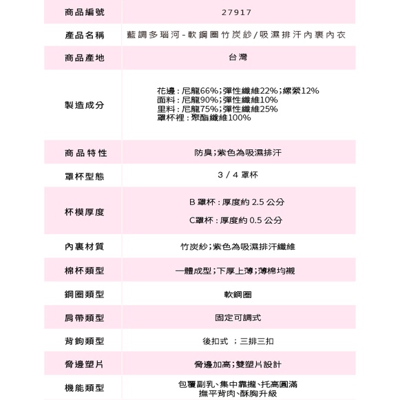 凱沃 慕思爾 Choy’s Dream 巧衣織夢 藍調多瑙河 軟鋼圈竹炭紗/涼感吸濕排汗內裏內衣 B C D MIT藍,36C|藍,38C|藍,40C|藍,34B|藍,36B|藍,38B|藍,40B|藍,34C|藍,32B|藍,32C|藍,32D(僅紅色有此尺寸)|藍,34D(僅紅色有此尺寸)|藍,36D(僅紅色有此尺寸)|藍,38D(僅紅色有此尺寸)|藍,40D(僅紅色有此尺寸)|紫,32D(僅紅色有此尺寸)|紫,34D(僅紅色有此尺寸)|紫,36D(僅紅色有此尺寸)|紫,38D(僅紅色有此尺寸)|紫,40D(僅紅色有此尺寸)|紅,32D(僅紅色有此尺寸)|紅,34D(僅紅色有此尺寸)|紅,36D(僅紅色有此尺寸)|紅,38D(僅紅色有此尺寸)|紅,40D(僅紅色有此尺寸)|紅,32B|紅,34B|紅,36B|紅,38B|紅,40B|紅,32C|紅,34C|紅,36C|紅,38C|紅,40C|紫,36C|紫,38C|紫,32B|紫,34B|紫,36B|紫,32C|紫,38B|紫,40B|紫,34C|紫,40CSetsChoy’s Dream 巧衣織夢內衣-慕思爾內衣&凱沃內衣專賣